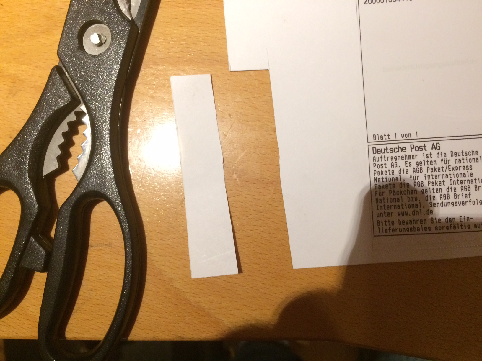 Du kannst auch eine Quittung der Post oder ein Stückchen von eine Postkarte nehmen, was halt am besten passt.