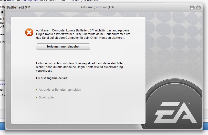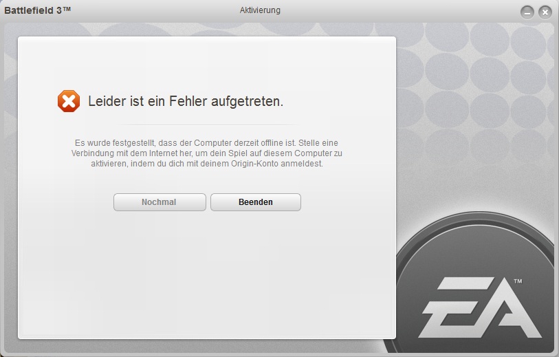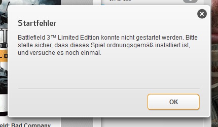 Jedes mal wenn ich BF3 mit origin starten möchte kommt diese Fehlermeldung: