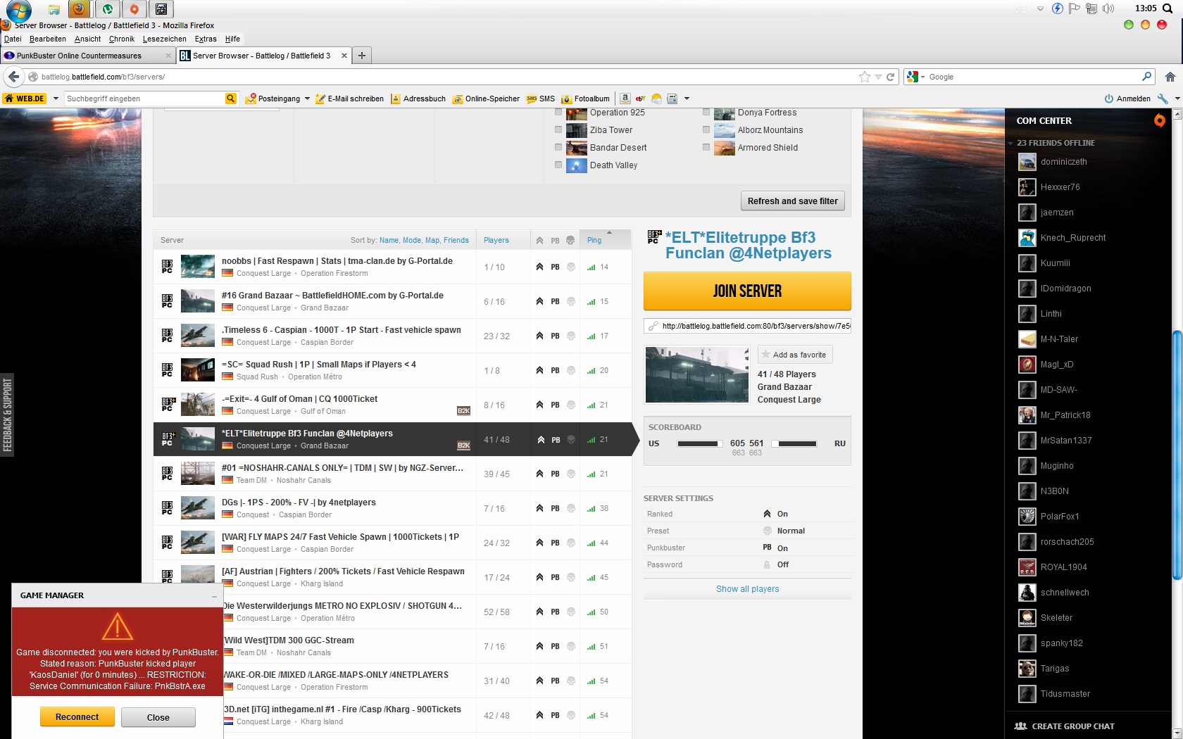 KaosDaniel schrieb:Hab ich auch gemacht. Und jetzt komm ich gar nicht mehr ins Spiel, sondern flieg schon vorher wegen einer Punkbuster-Fehlermeldung wieder raus...![]()