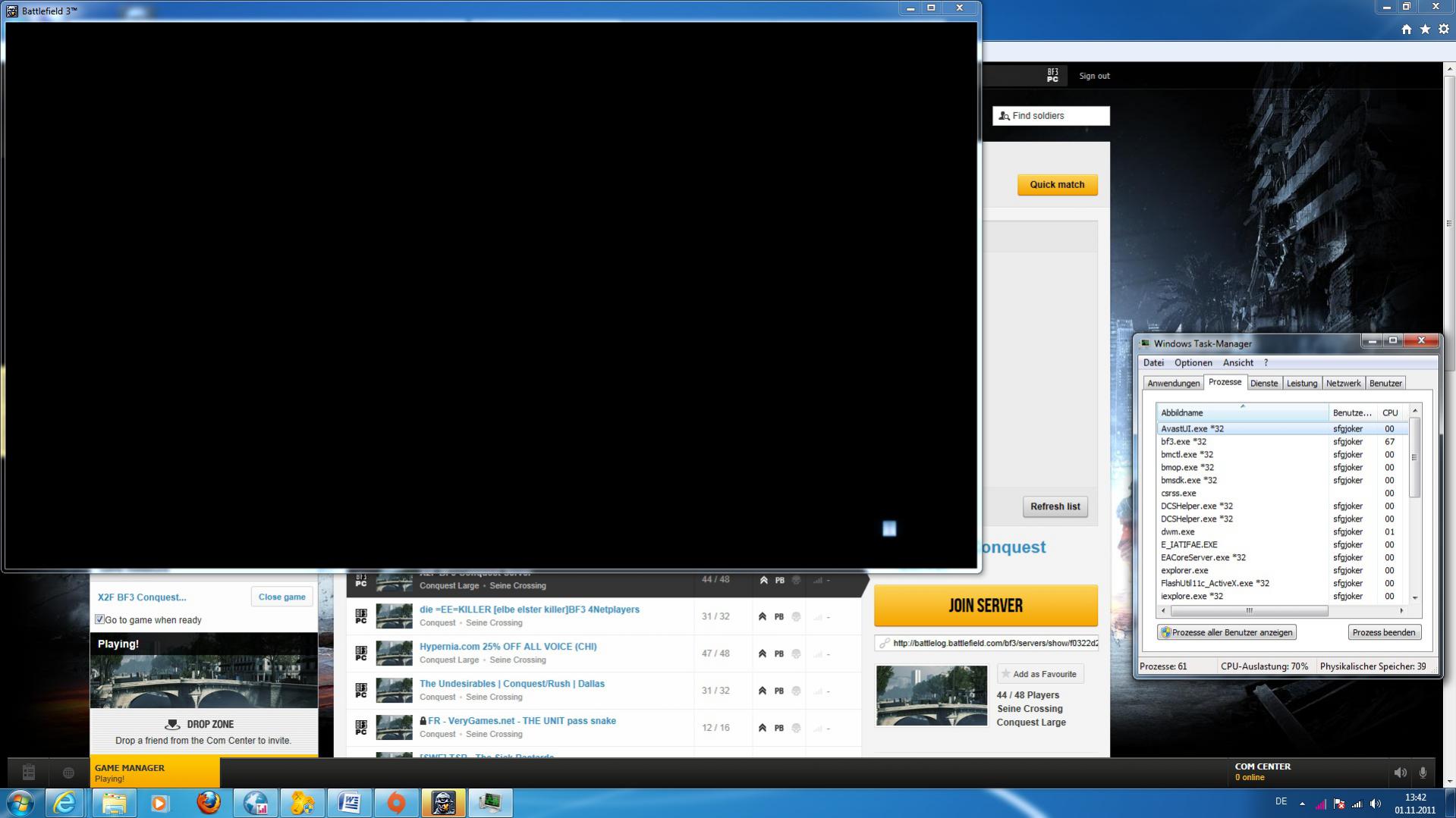 Immer wenn ich zu einem Multiplayer-Server bei BF3 joinen will passiert folgendes: