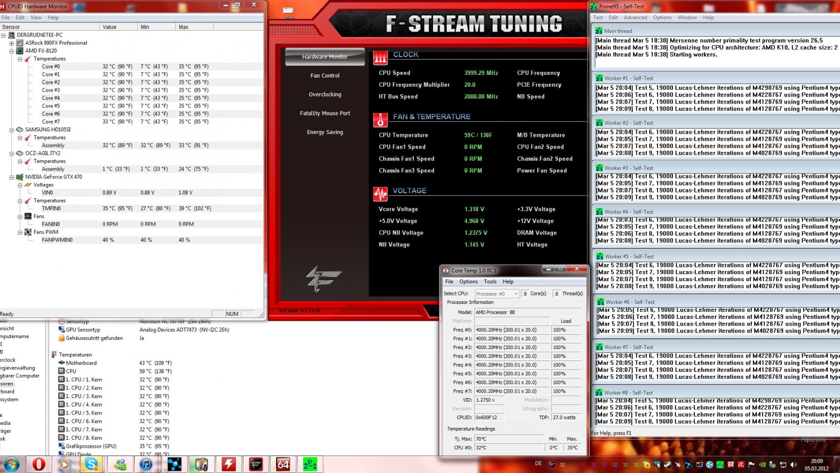 Cpu läuft mit Boxed Kühler und ist von 3x2,7ghz auf 3x3,4ghz übertaktet worden.