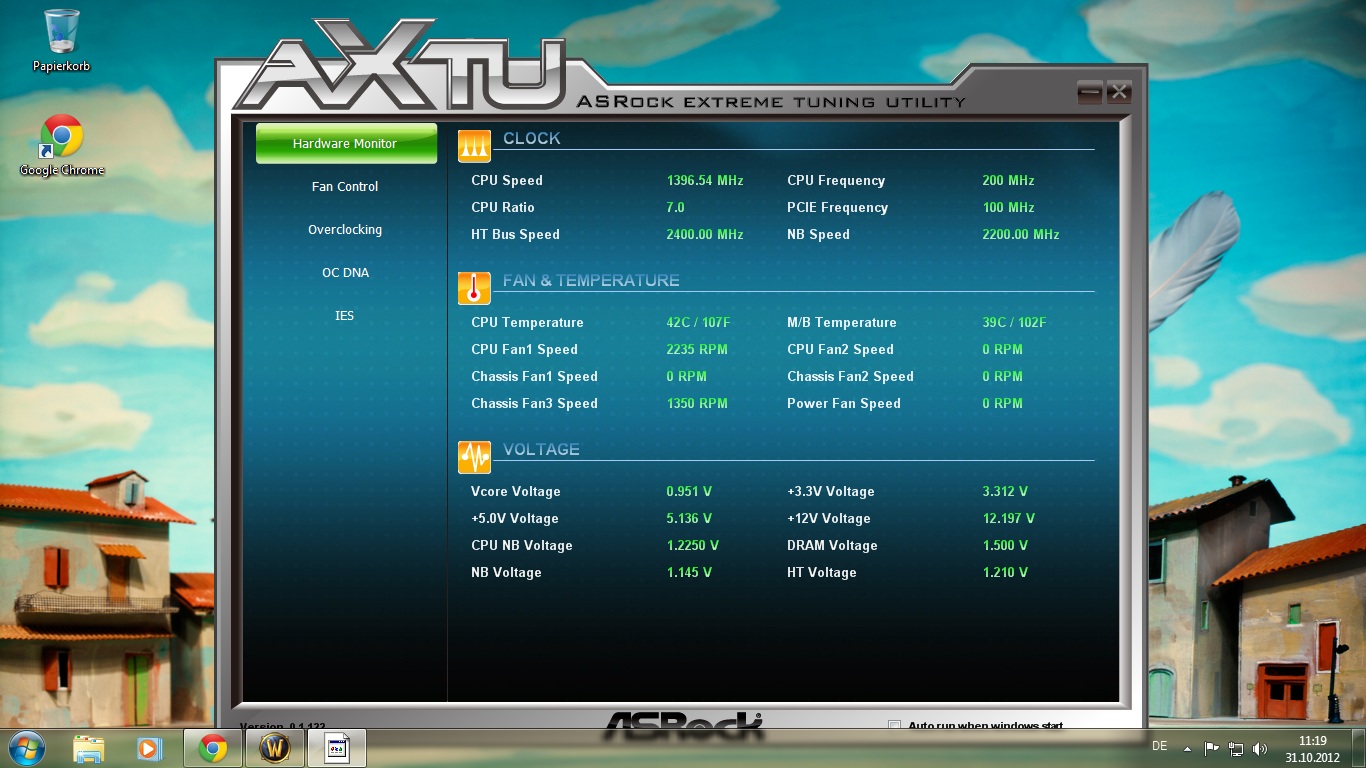 Ich habe mal ein Bild in den Anhang geladen, CPU@ stock mit nur 1,23V im Bios eingestellt. Prime lief 6min, die Temperaturen bleiben jetzt so +2-3K. Das Asrock tool gibt die selbe Temperatur wie im Bios, deshalb regelt der CPU-Lüfter auch gleich hoch. Core Temp und AMD Overdrive geben niedrigere Temperaturen, HWinfo gibt gleich zwei unterschiedliche.