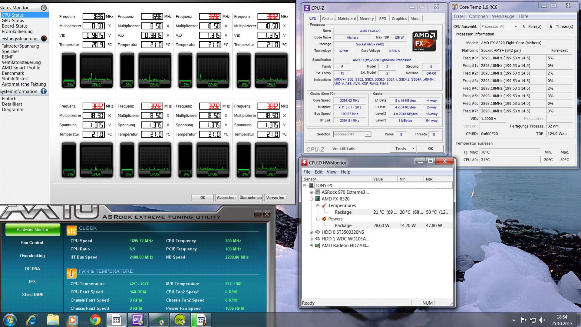 CPU: AMD FX-6300 @ 4.2 GHz - 1.325V VCore & NB @ 2200 MHz bei 1.2V - Turbo ist aus CnQ ist an.