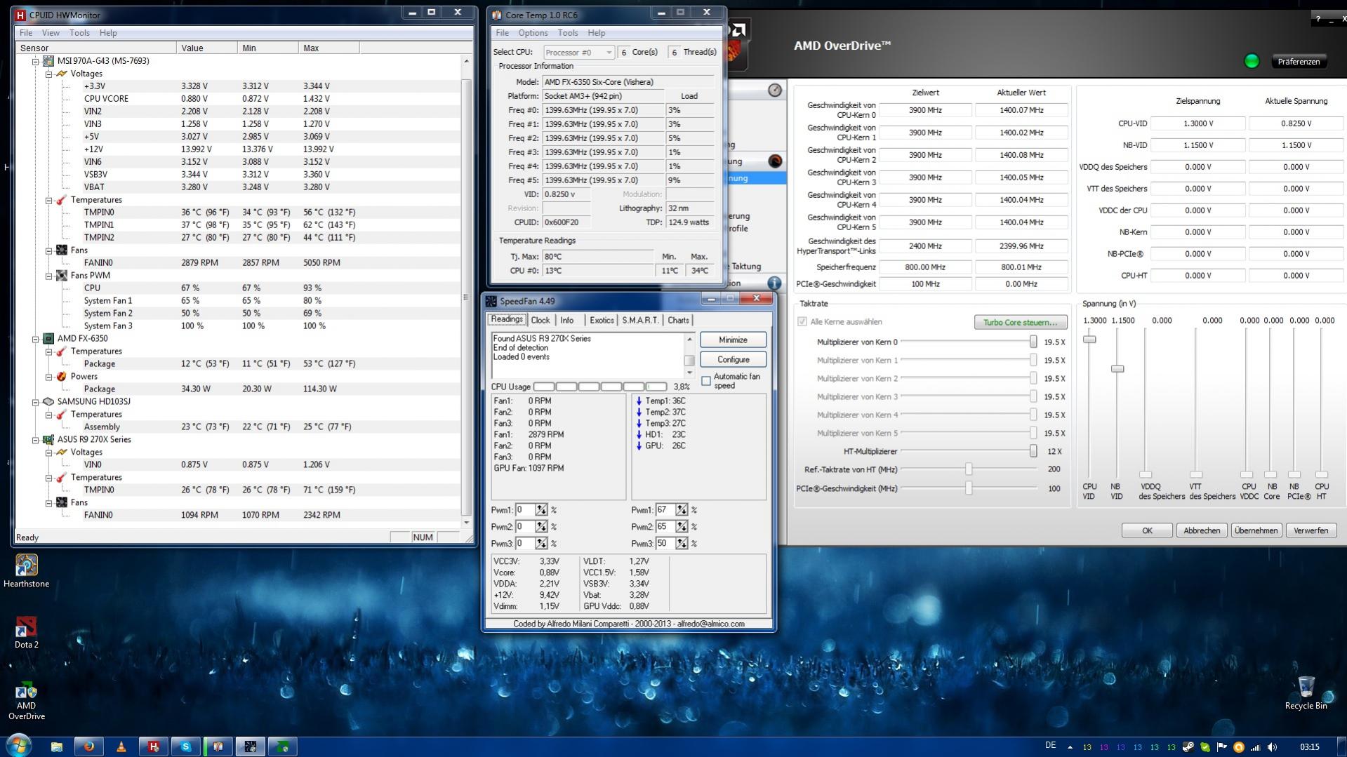 Er läuft jetzt mit 3900Mhz und die Temperatur hat sich eigentlich nicht verändert.