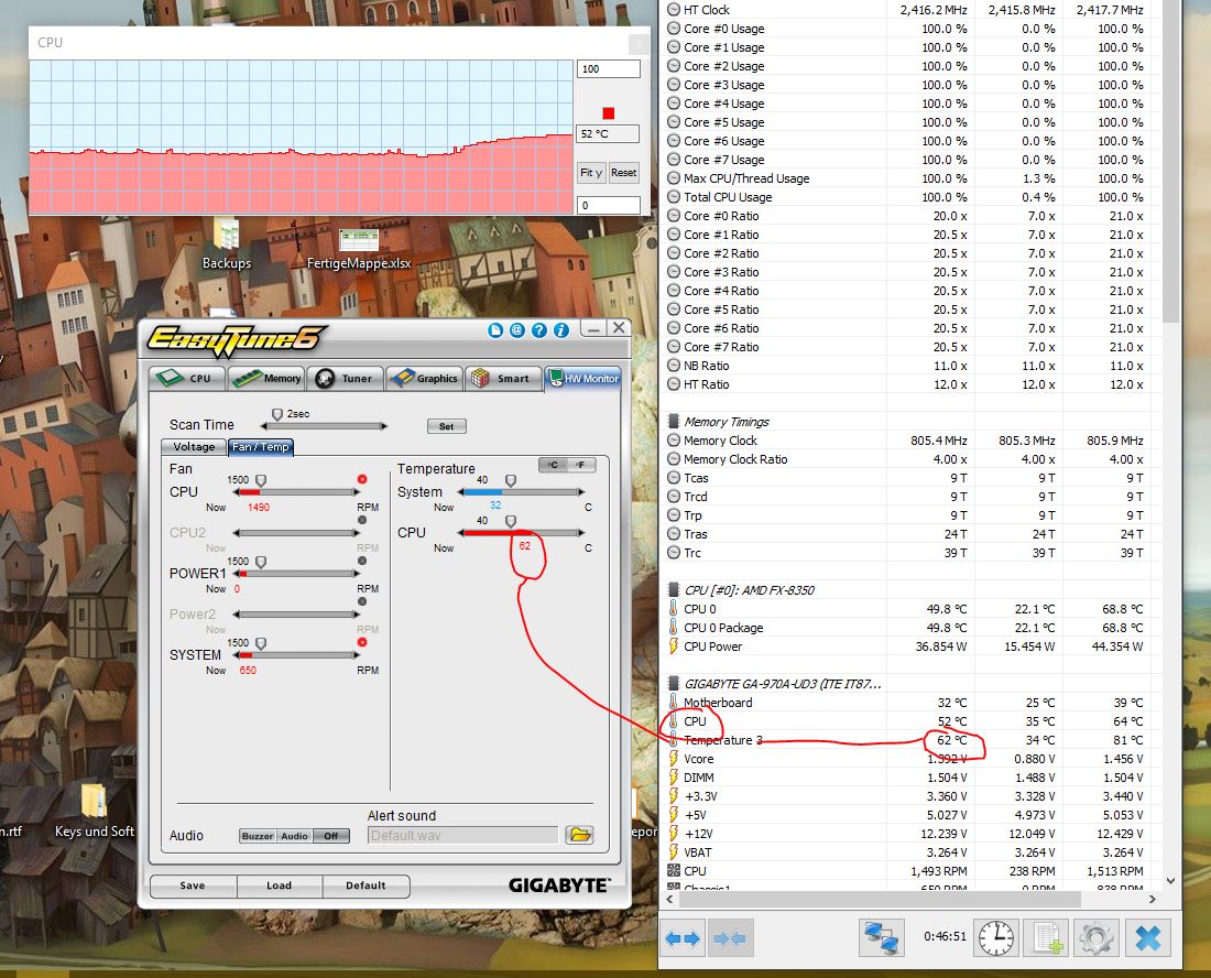 Probleme habe ich keine, aber ich hab keine Lust, dass die CPU oder das Mainboard Schaden nehmen, wenn es zu heiß wird durchdie CPU Temperatur.