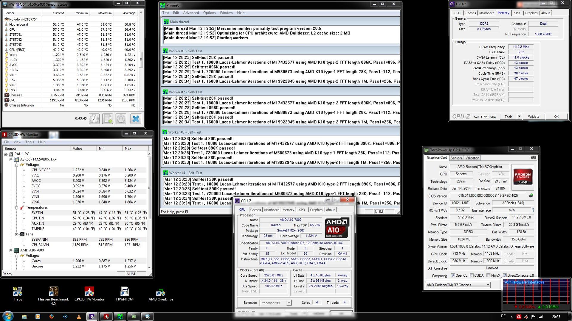 Okay, also die NB testet man wohl am besten mit Prime large ffts. Die CPU mit ffts in place. RAM mit Hyper PI. Die Northbridge muss ich schon hochhalten, soweit ich weiß, da diese für den Datentransfer des Speichers durchaus erheblich ist. Also wäre es kontraproduktiv den RAM Takt anzuheben und die NB aber zu senken.