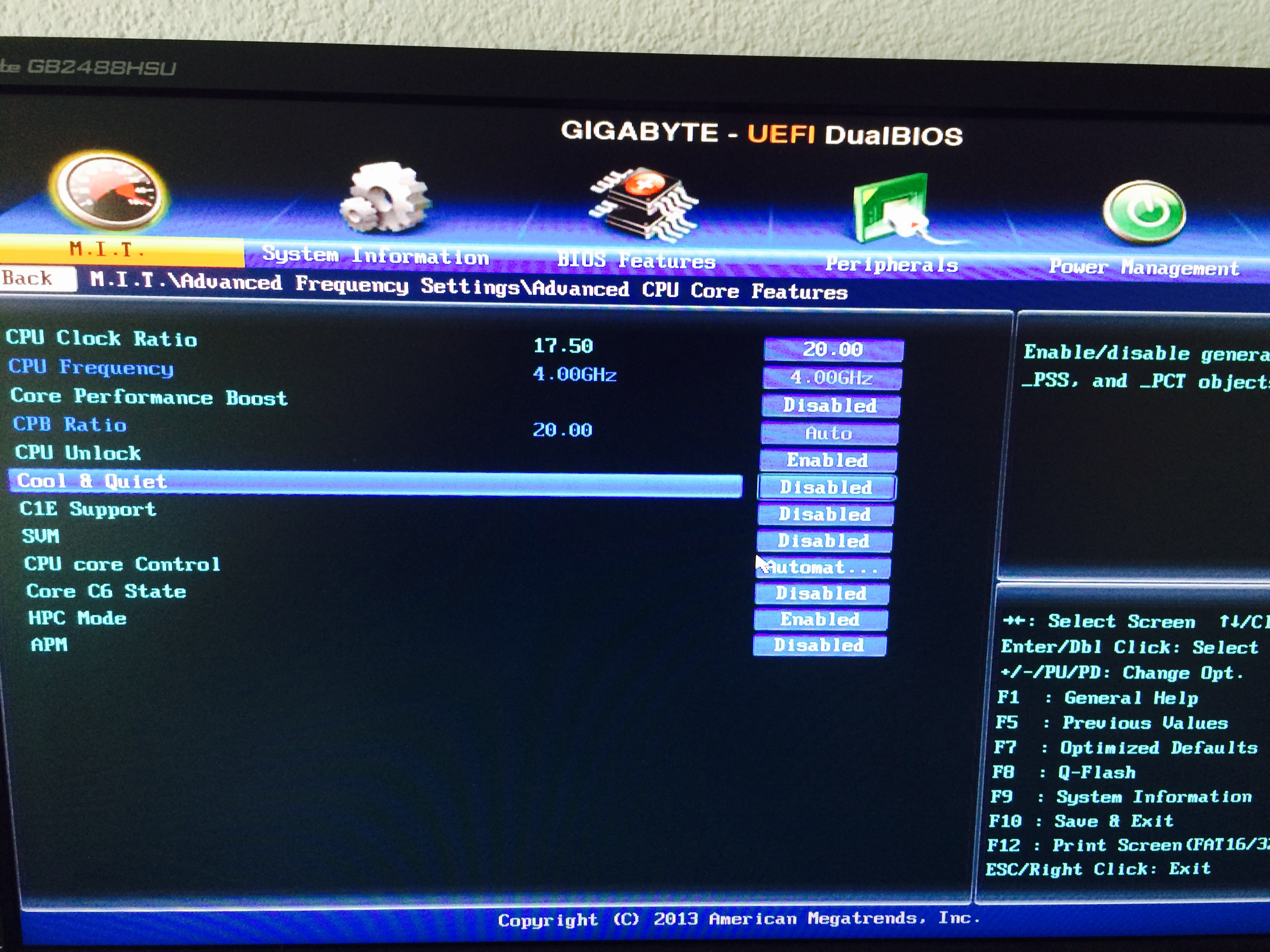 ich habe mein fx8120 übertaktet von 3,1 GHz auf 3,6 GHz weiter geht es anscheinet nicht ab 3,7 stürzt er beim spielen ab, obwohl ich gelesen habe er soll eigentlich bis 4,0 GHz gehen. Also bei 3,6 GHz hat er unter voll last eine Temperatur von 65 grad. habe mal ein paar Bilder vom Bios gemacht vielleicht mache ich ja auch was nicht richtig und wie heiß darf mein CPU eigentlich maximal werden.