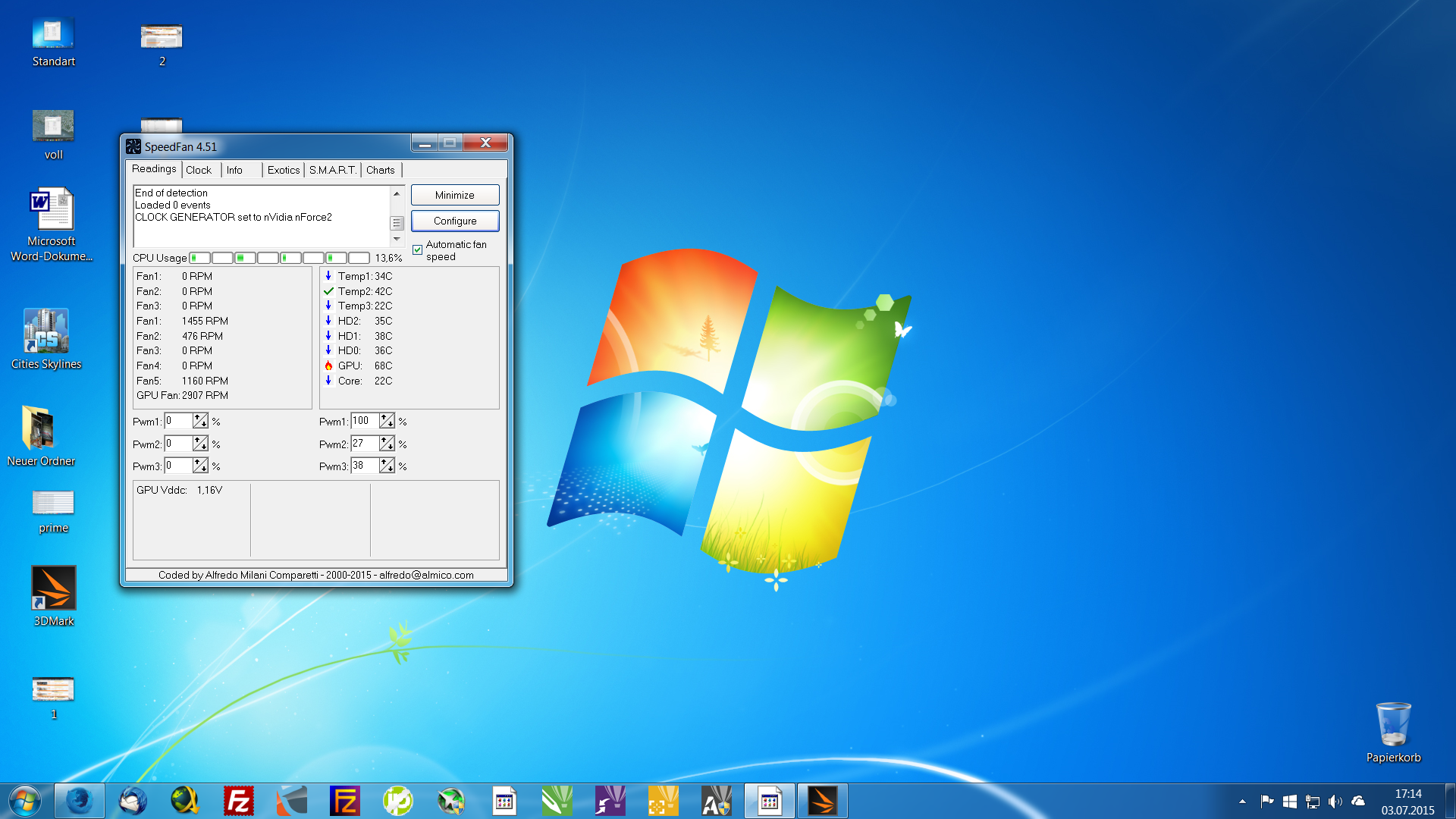 Wobei mich ja nach wie vor CPU-Z trotz neuester Version Stutzig macht. Mal sagt er mir während Prime läuft eine Vcore von 1,424 mal darunter mal weit darunter.