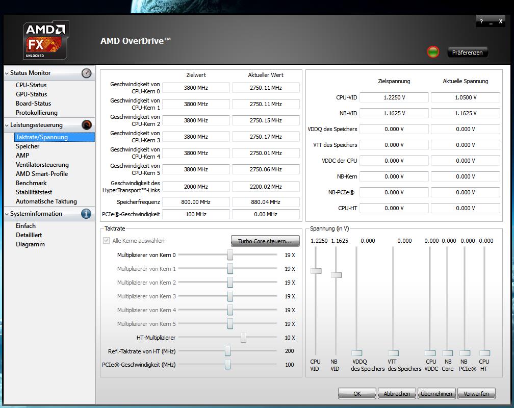 AMD Overdrive: Multi für HT kann eingestellt werden, für die NB wird er nur angezeigt: