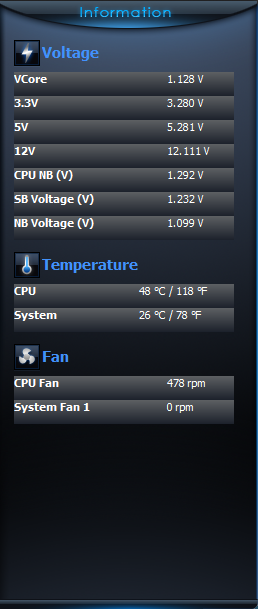 Der CPU genannte Sensor müsste bei mir der sein, der Im Bios die MB Temp anzeigt. Hab noch einen Sensor der mir vom Namen her nichts sagt (T1/D1+) der ist nahezu identisch mit meiner CPU Temp aus "Core Temp". Hast du das mal getestet?