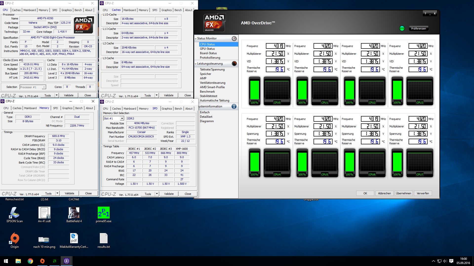 Sobald ich auf 4200 oder mehr gehe steigt nach spätestens einer halben Stunde ein Kern bei Prome95 aus.