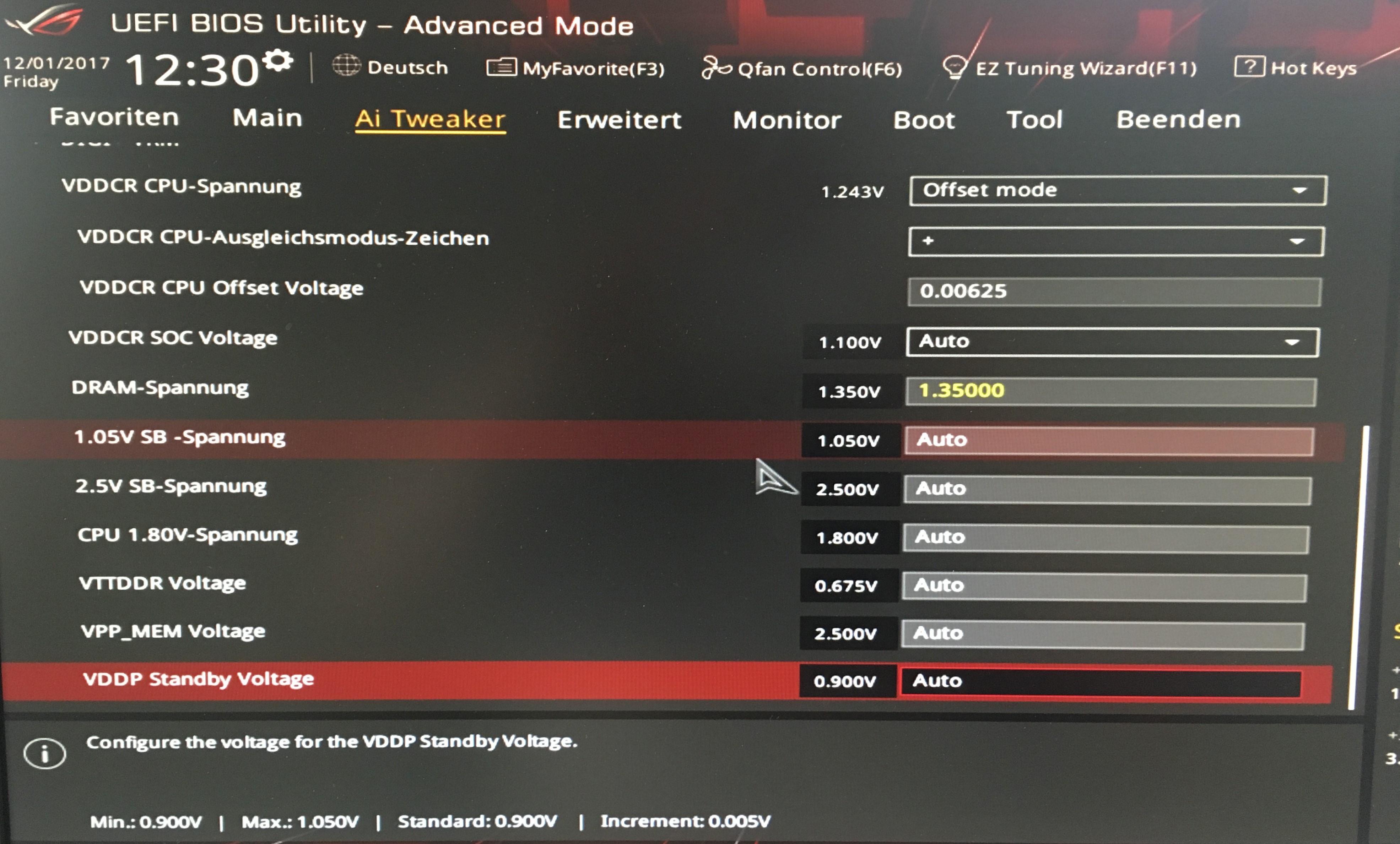 mit der AiSuite3 Software kann ich die Spanung runtersetzen, doch nach dem neustart ist es wieder bei den 1.5v.