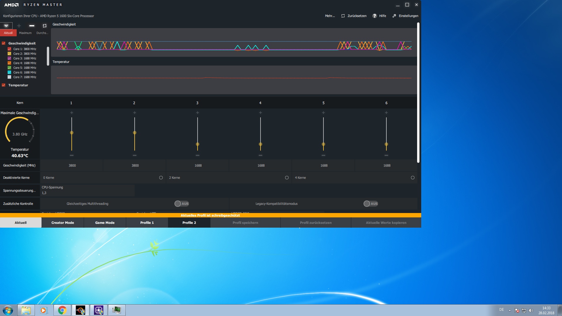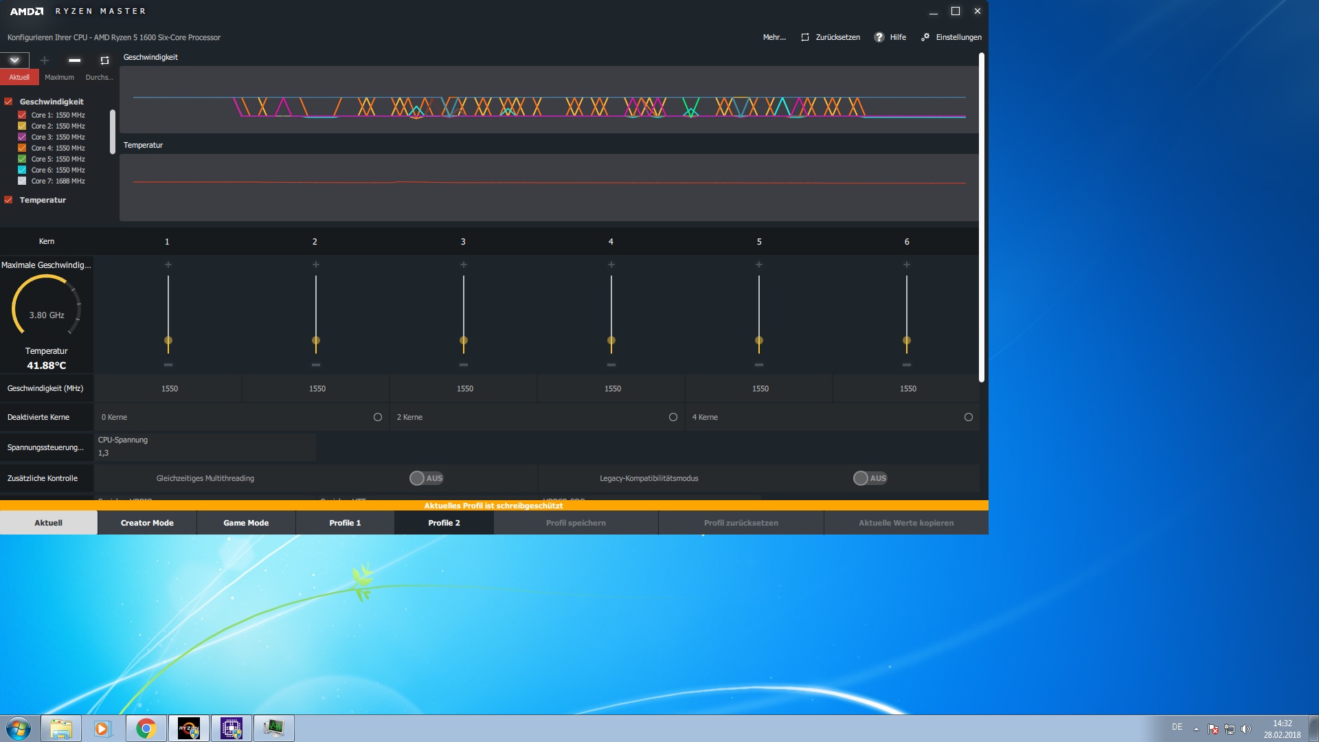 ich hab vorhin ma n game lol gespielt und hab nach 5-10 mins n bug splat bekommen. seit dem hat sich irgendwie was verändert. unter cpu-z wird permanent nur max 1,5ghz angezeigt bei core speed und 15.5 multi. und dei core voltage ist auf ~1v gedroppt. auch unter dem ryzen master tool war gleiches abzulesen. habe dann im bios default einstellungen geladen. core speed war dann wiede rbei 3+ und voltage auch bei 1.1 irgendwas. sobald ich aber meine alten settings einstelle, verliere ich 0.25v was dann wohl dafür verantwortlich ist, dass der core speed so einsackt.