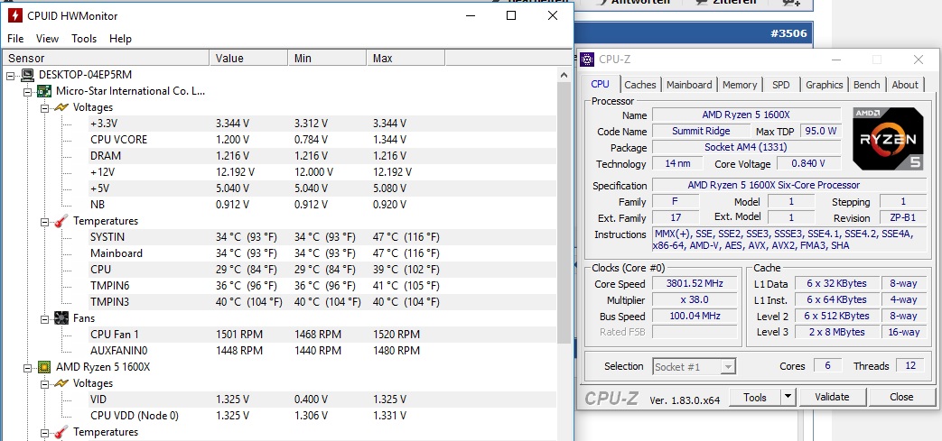 Habe dem Ryzen 1600x jetzt einen festen vcore von 1.32v gegeben denn er hatte bei Standard Bios settings 1,48v