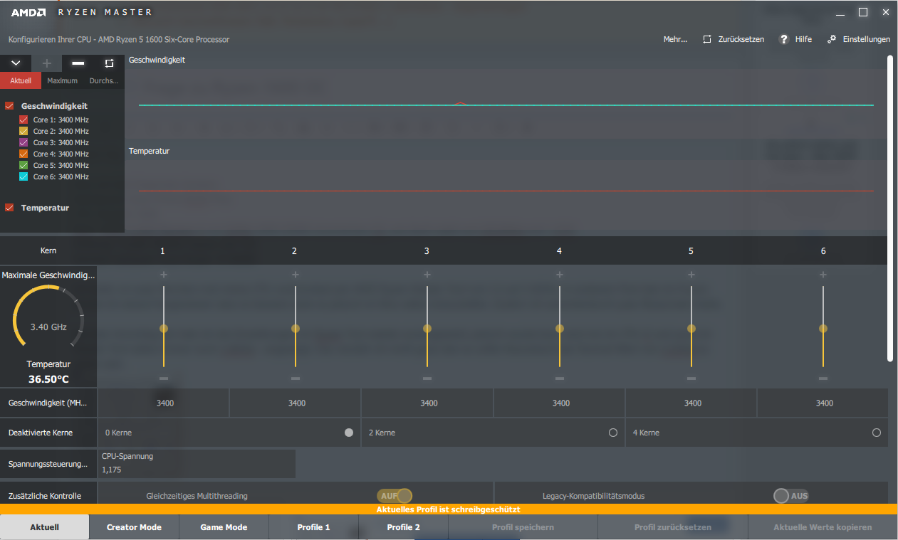 Wenn du nun übertakten willst verstehe ich nicht ganz wie man auf die Idee kommt im ersten Versuch einfach mal die Spannung auf über 1.4 V (1.25V + 0.1625V) zu erhöhen. Dann vielleicht doch eher mal davor in die Thematik einlesen. Dein Ryzen 1600 sollte ganz ohne Spannungserhöhung problemlos die 3.6-3.7 GHz schaffen auf allen Kernen, nur so aus eigener Erfahrung.