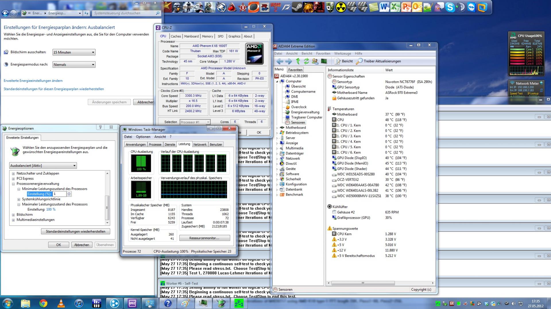 Takt fällt, Temperatur ist gut. Nur die Spannung geht hoch.