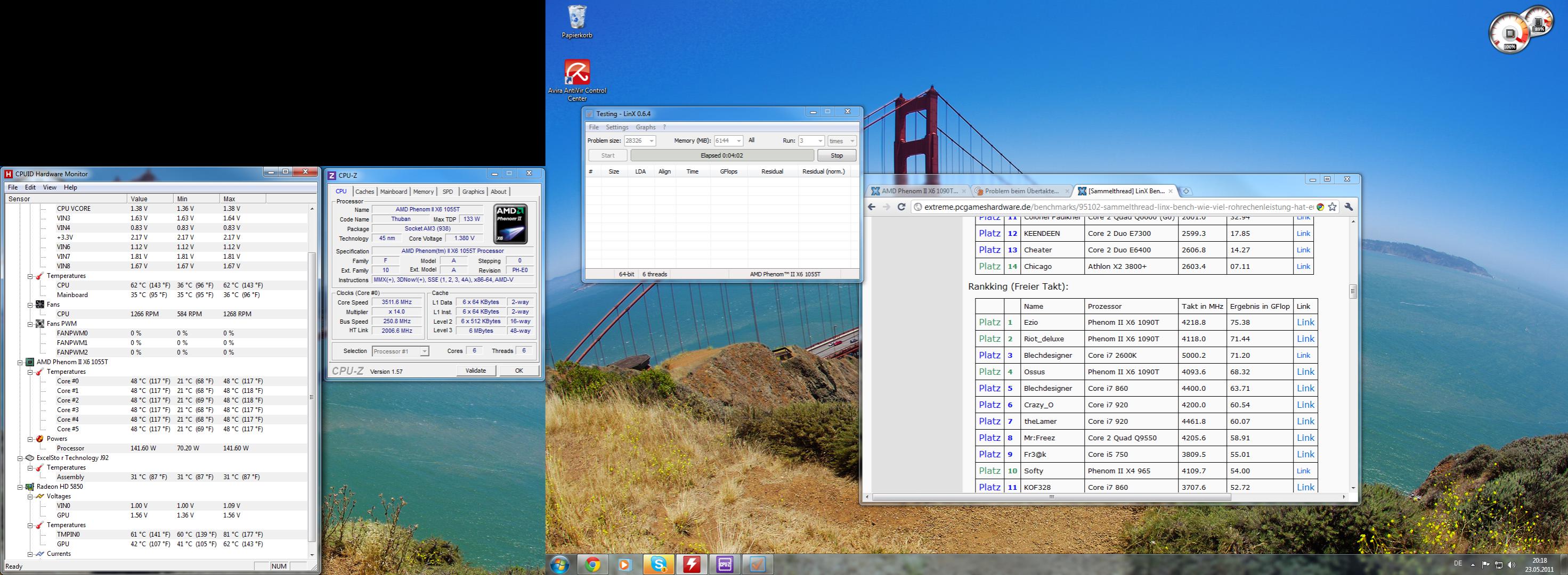 hab mal nen screen von cpu z hw monitor und linx angehängt