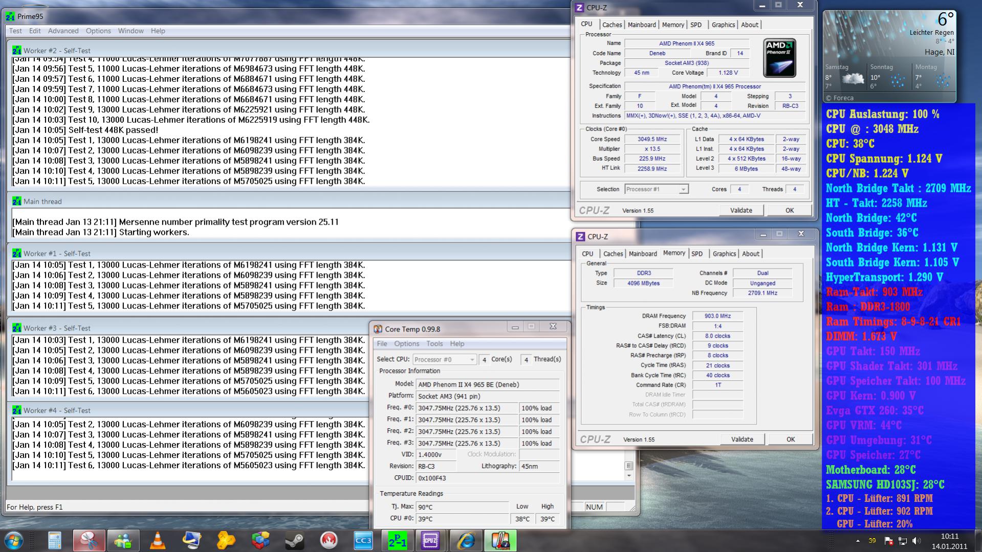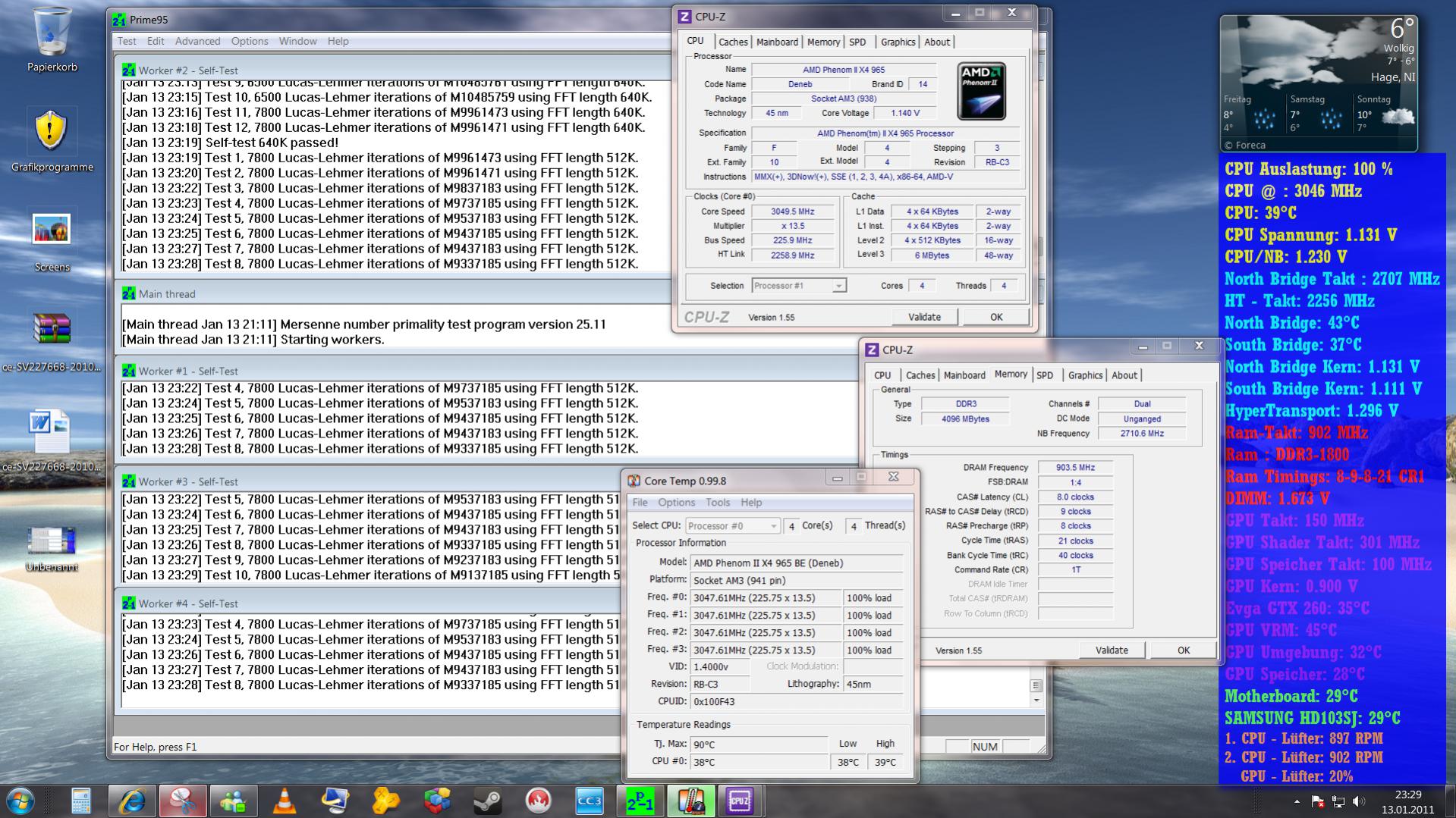 Ich hab nicht übertaktet und wollt erst mal so auf Stabilität testen. Nach ner halben Std. Prime95 hab ich auf allen 3 Kernen 40° und insgesamt steht bei CPU 54°... Ich hab den Mugen 2....