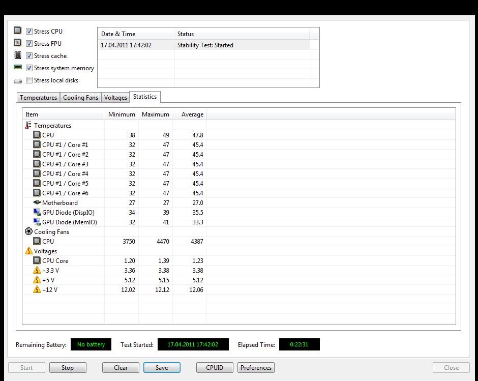 Jetzt das merkwürdige, ich Führte den Stresstest von AIDA64 Extrem Edition aus folgende werte änderten sich.