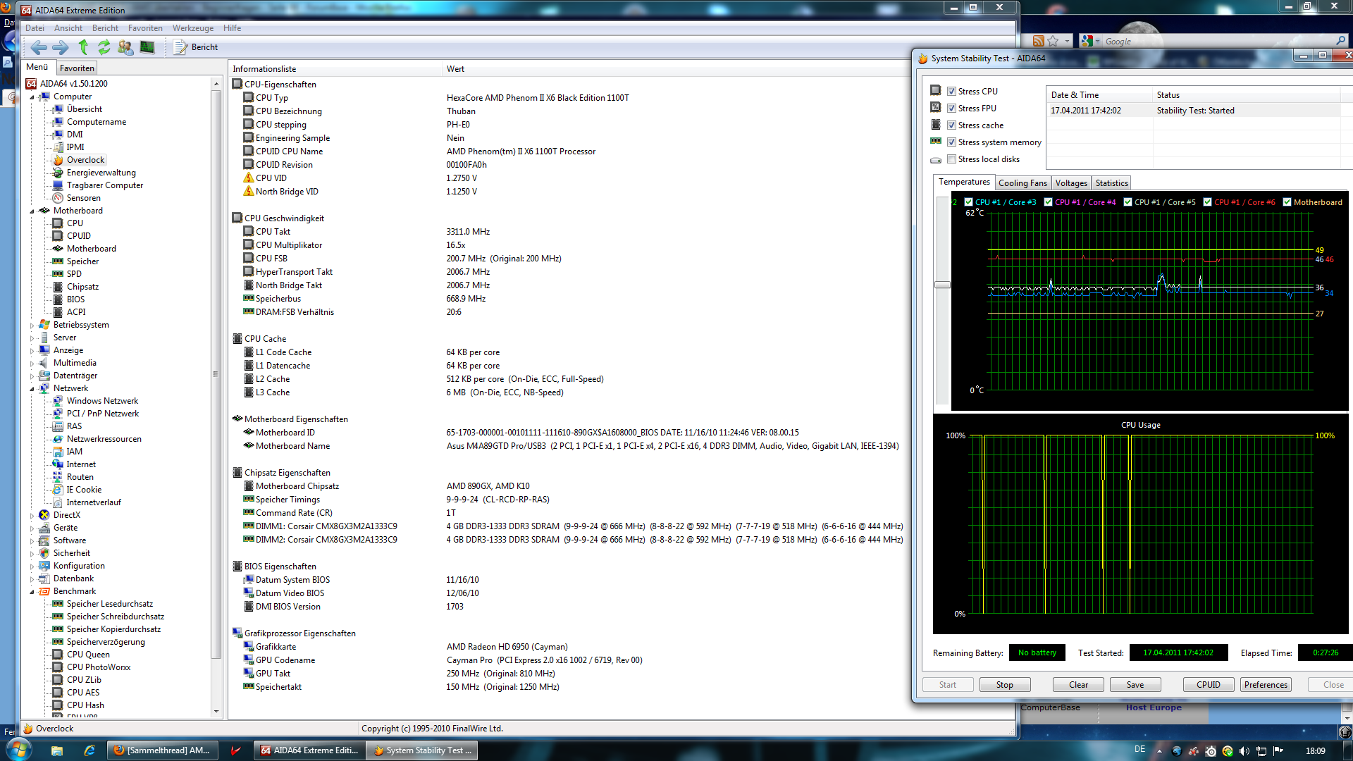habe eigentlich alle einstellungen auf standard gelassen nur den multi von 15,5 (entspricht 3,1GHz) auf 19 (entspricht 3,8GHz) gehoben und die vcore auf 1,504V (laut CPU-Z, in AMD overdrive steht sie eigentlich gerade mal auf 1,4125V; keine ahnung, was richtig ist).