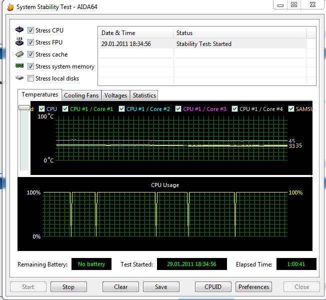 Auch wenn alle immer so über AMD Overdrive schimpfen, meiner Erfahrung nach zeigt der Stabilitätstest von AOD immer am besten auf wenn es Fehler gibt. Gab schon einige male, da lief Prime über Stunden ohne einen Ton und beim AOD-Stabilitätstest war dann relativ schnell schluss. Wäre sicherlich auch schon aus dem Grund net von der Hand zu weisen, da AMD wohl weiß wie man die Prozessoren "quält" um wirklich die Stabilität herauszufinden. Vorteil wäre weiter, dass man einfach nur alle Haken setzen muss und sonst nix auswählen muss.
