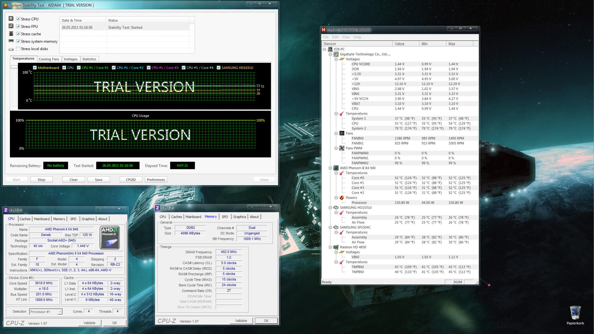Man hätte natürlich schummeln können indem man den Takt erst nach 2 Stunden aufdreht, aber das zeigt uns da ja eigentlich HWMonitor