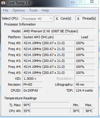 @Stock hat er auch unter Last nur 1,26V: (Auf dem Screenshot hat er gerade nur 3,3Ghz, ist @Stock aber genauso.)