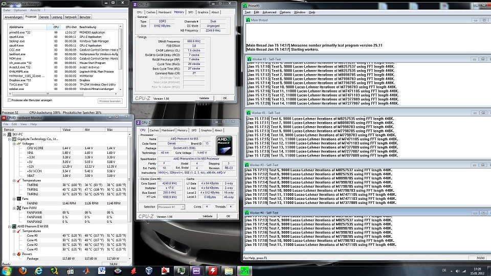 hier nun der lang erarbeitete 2 Std. prime run mit 4,5 Ghz bei 1,45 V. Ich denke es ist alles komplett auf dem screen, mit extra CPU-Z Validierung.