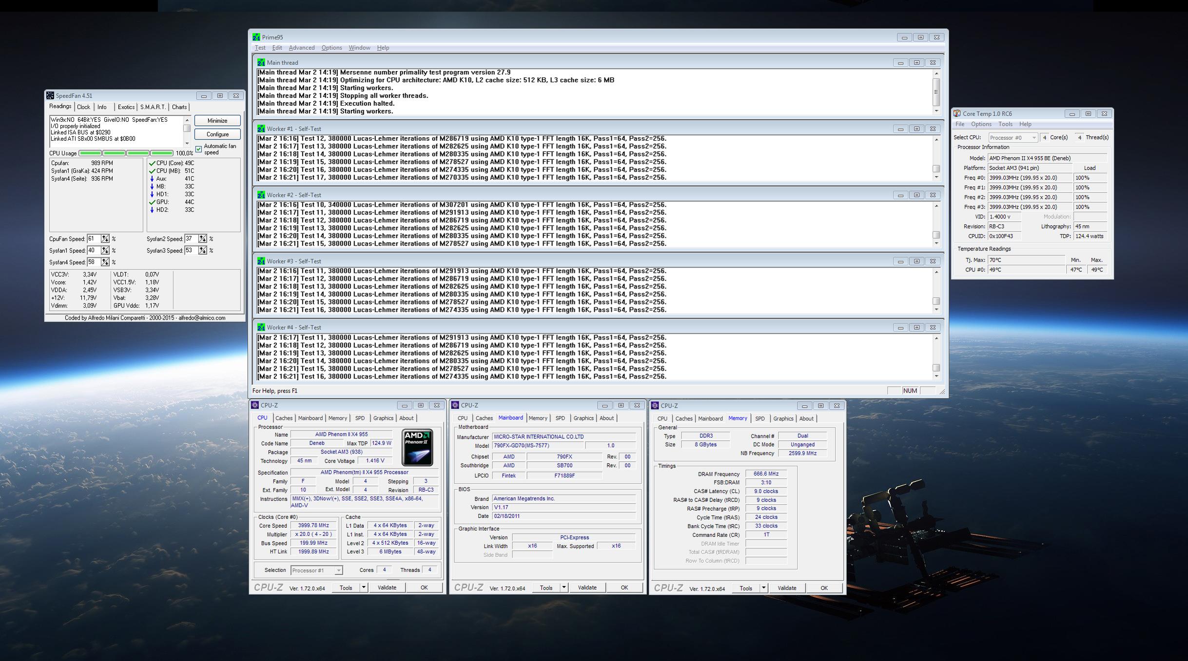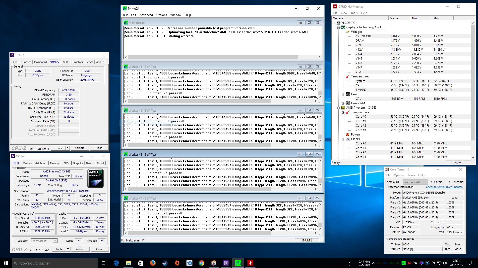 Phenom II X4 955, 4x4.0GHz@1,416V und 48°C unter full load. Memory @2600MHz bei 1,2V