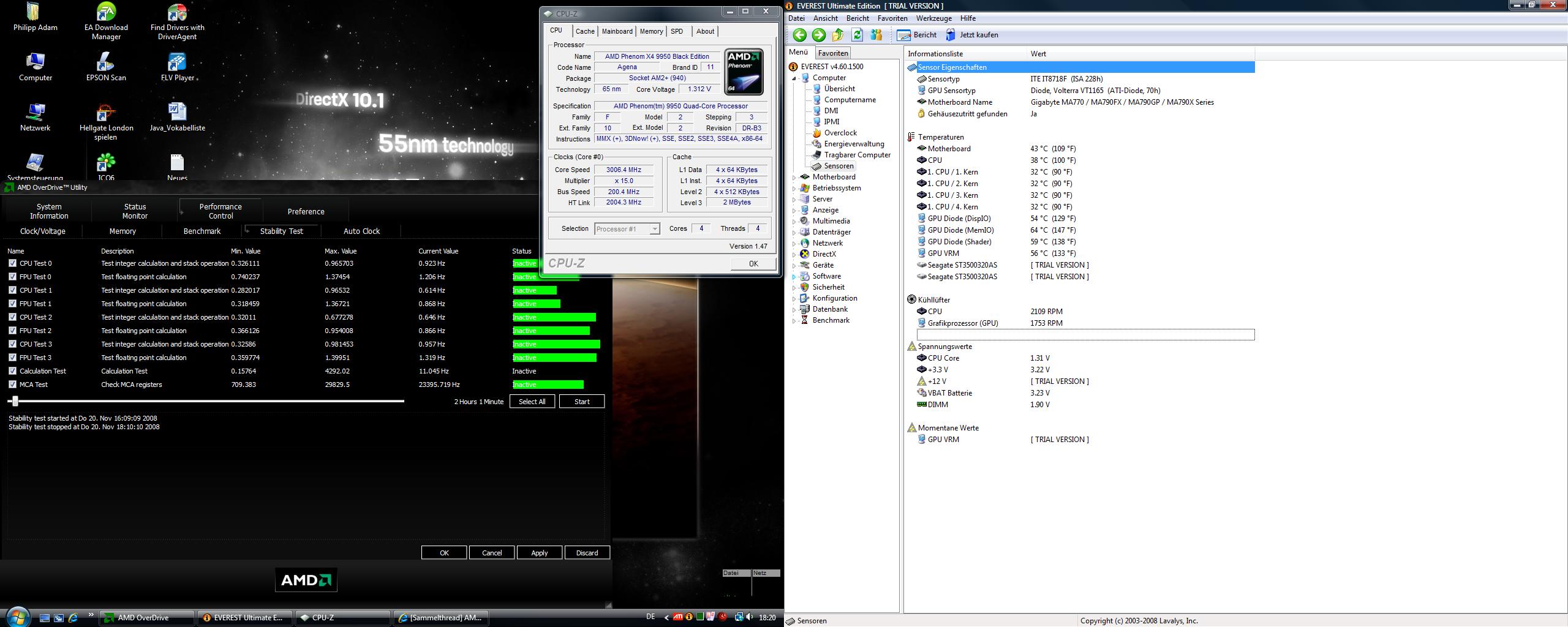 1. Modell: AMD Phenom X4 9950 Black Edition / Agena / 65nm / 140W TDP