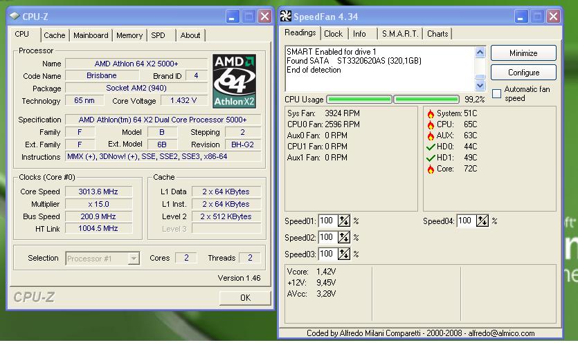 Jetzt läuft mein 5000+ BE auf 3,1 Ghz mit 1,45 Vcore vorher stimmte die Luftzikulation im Gehäuse nicht.