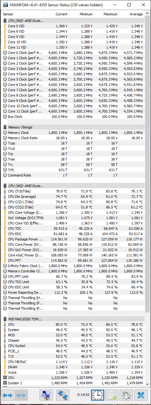 Die Temps schwanken schon stark, auch erzeugt der Boot z.B. einen stärken Temperatur Peak als 10min All-Core R23 bei 200 Watt (ich habe 24/7 bei 200 Watt abgerelt da sich das prima kühlen lässt) von daher gebe ich dir an der Stelle recht, das haben die Ryzens so an sich. Ich wüsste aber auch nicht wieso ich das "behandeln" sollte, das ist von AMD so gewünscht auch auch exakt so vorhanden wenn man die CPU bei default PPT belässt. Ich hab da zuletzt mal was von 90°C sind normal gelesen, diese Temperaturen habe ich hier noch nie gesehen, erscheint mir, unter bestimmten Voraussetzungen aber nicht unrealistisch.