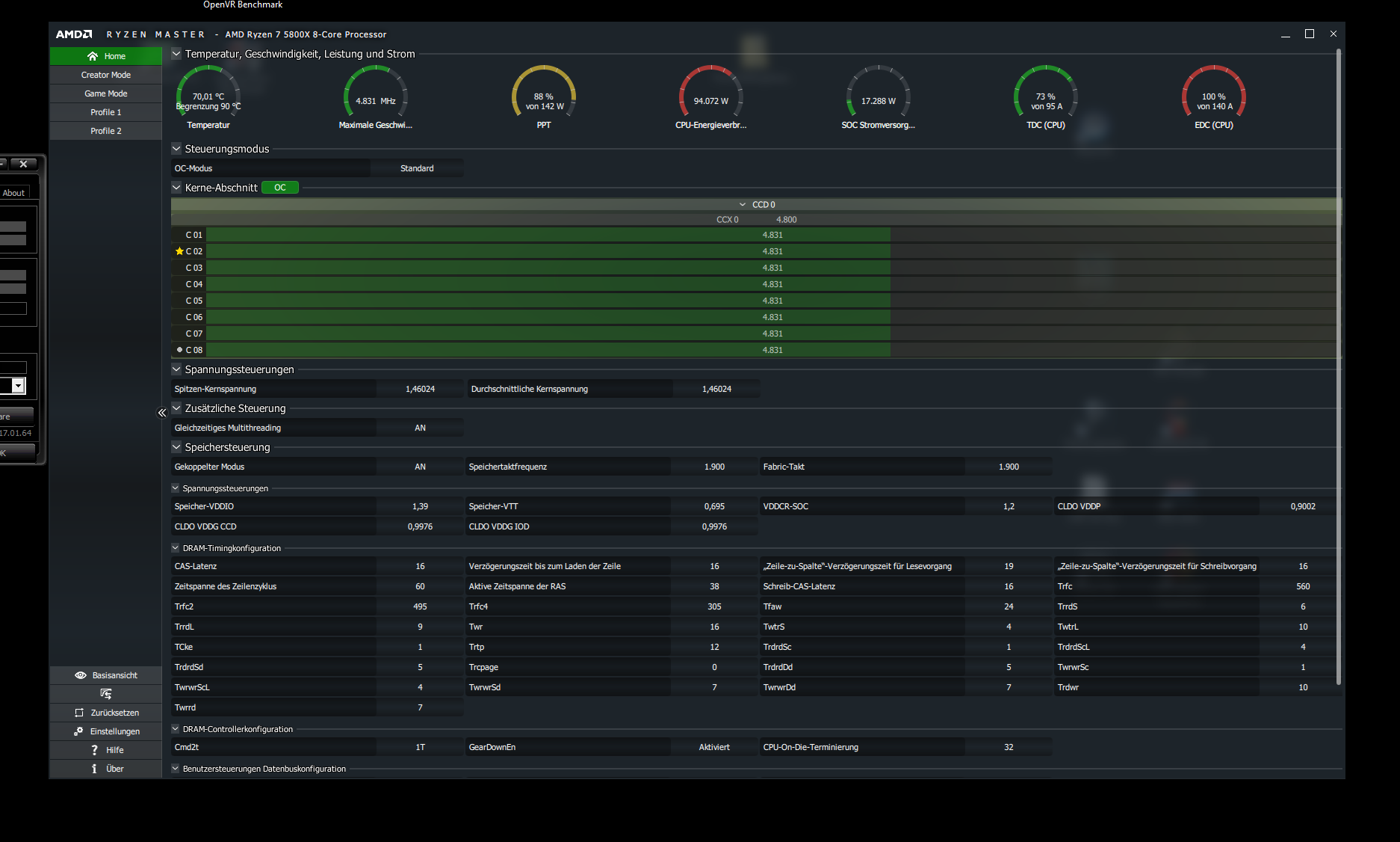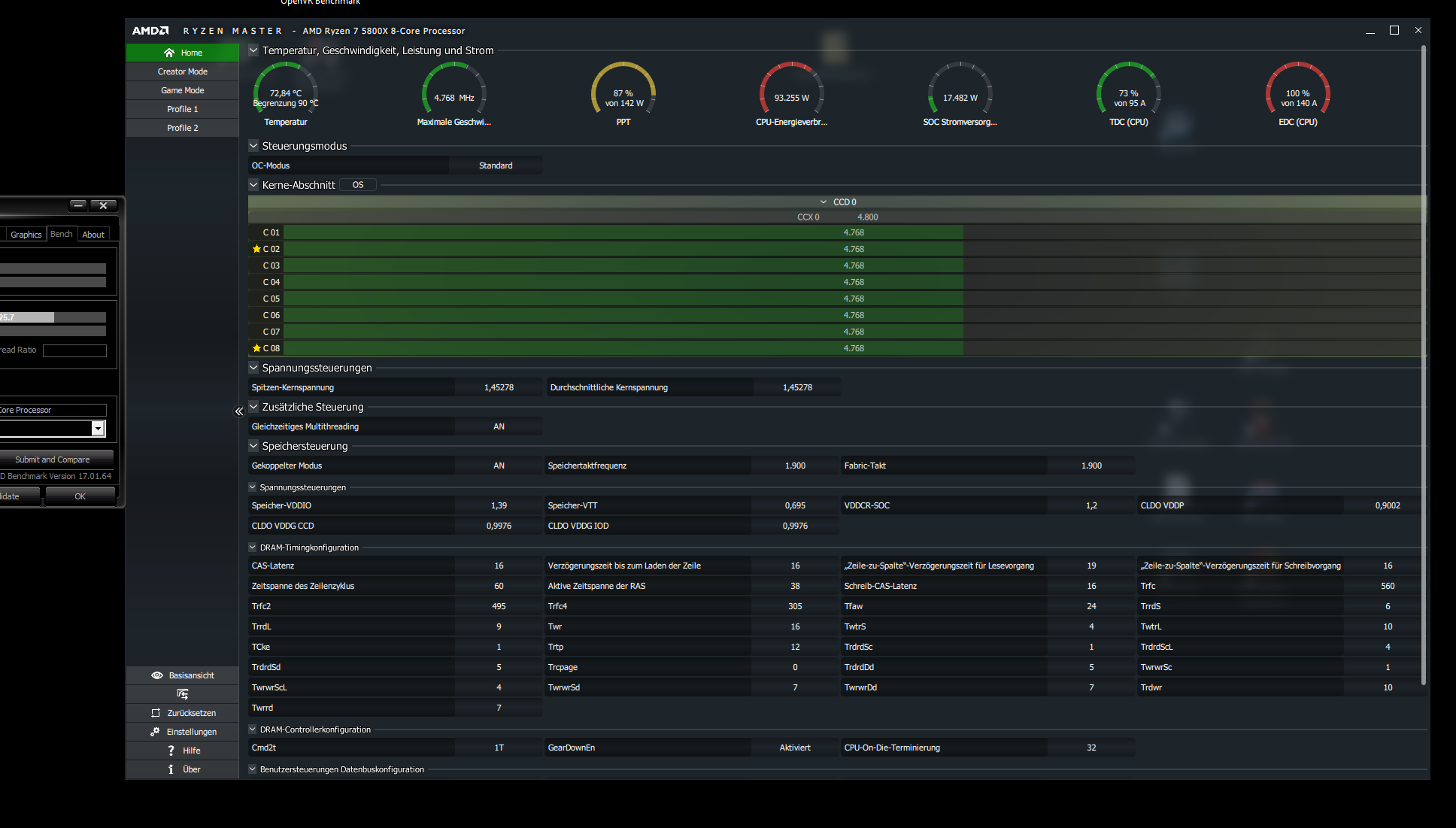 Somit bin ich bei -27 geblieben und habe zusätzlich die VCore und die SOC Core untervoltet mit 0.60mV.