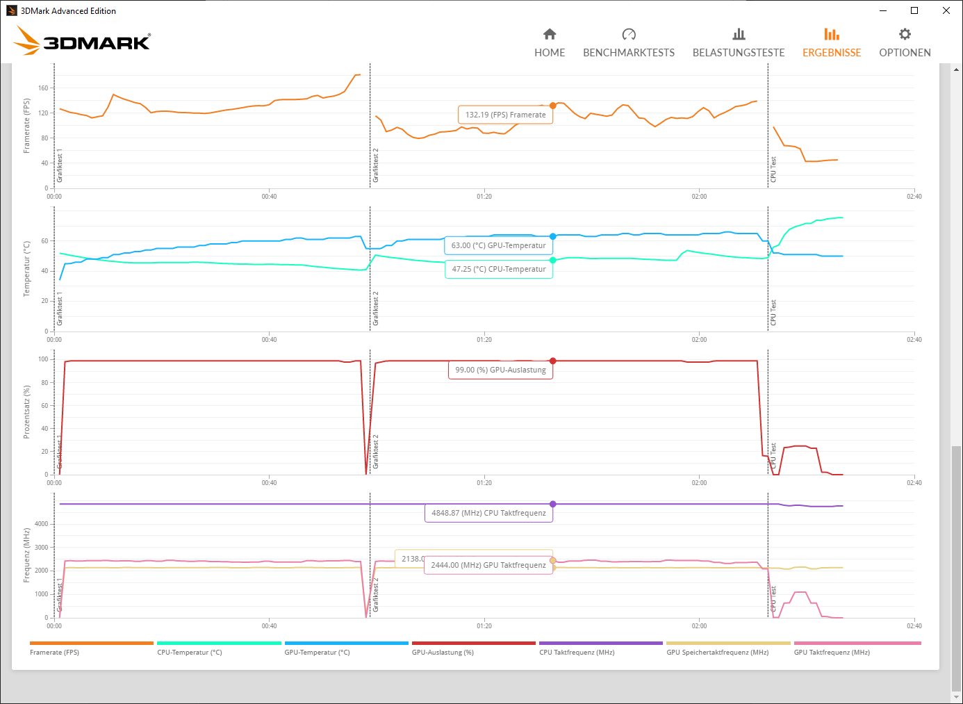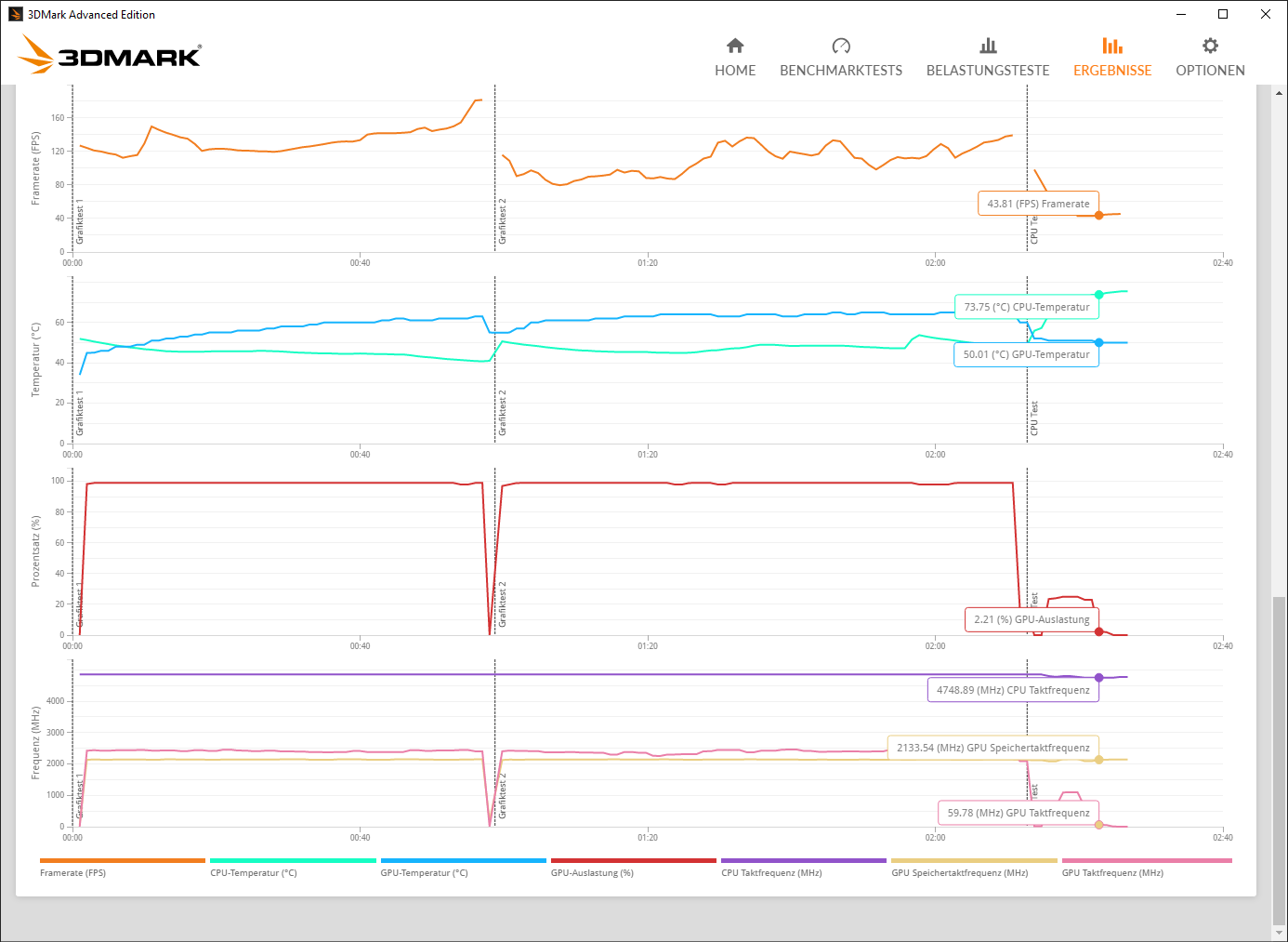 EDIT: ungewöhnlich ist eher das deine GPU im ersten Grafiktest quasi idlet.