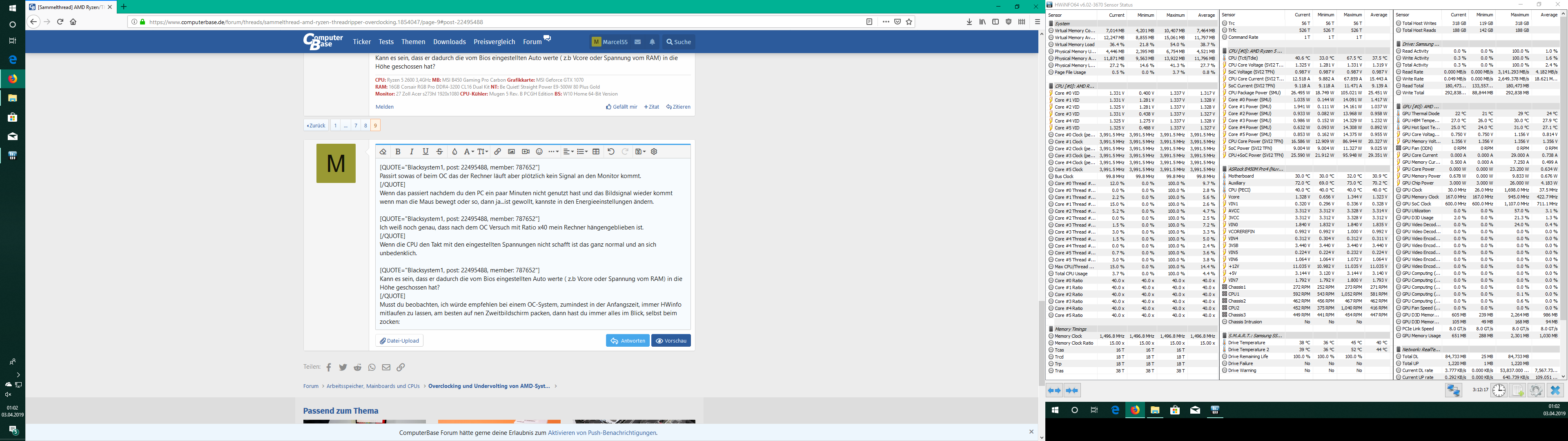 Musst du beobachten, ich würde empfehlen bei einem OC-System, zumindest in der Anfangszeit, immer HWinfo mitlaufen zu lassen, am besten auf nen Zweitbildschirm packen, dann hast du immer alles im Blick, selbst beim zocken, da reicht son alter Büro-Monitor vollkommen aus:Blacksystem1 schrieb:Kann es sein, dass er dadurch die vom Bios eingestellten Auto werte ( z.b Vcore oder Spannung vom RAM) in die Höhe geschossen hat?