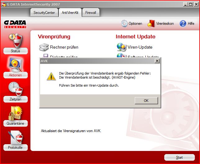 Das Programm Gdata AntiVirenKit2007 läuft unter Vista Home Premium 64Bit nur mit erheblichen problemen.