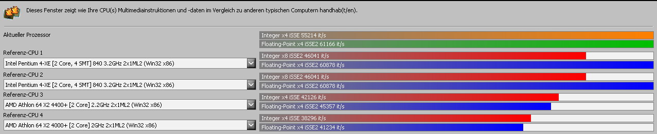 Edit: habe mal noch Sandra (205.10.1069) Arithmetik und Multimedia-Benchmark laufen lassen, auch wenn jetzt einige maulen, weil die CPU OCed ist...