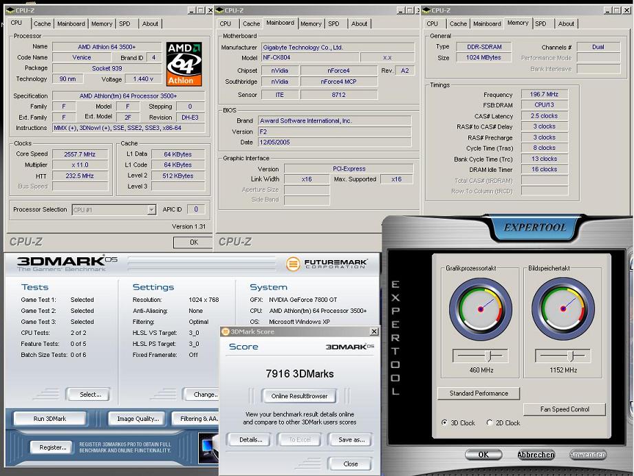 Die Erhöhung des HTT und des Speichertaktes um 10 MHz (von 250 auf 260 MHz) brachte je 500 GFX- und CPU-Punkte mehr!