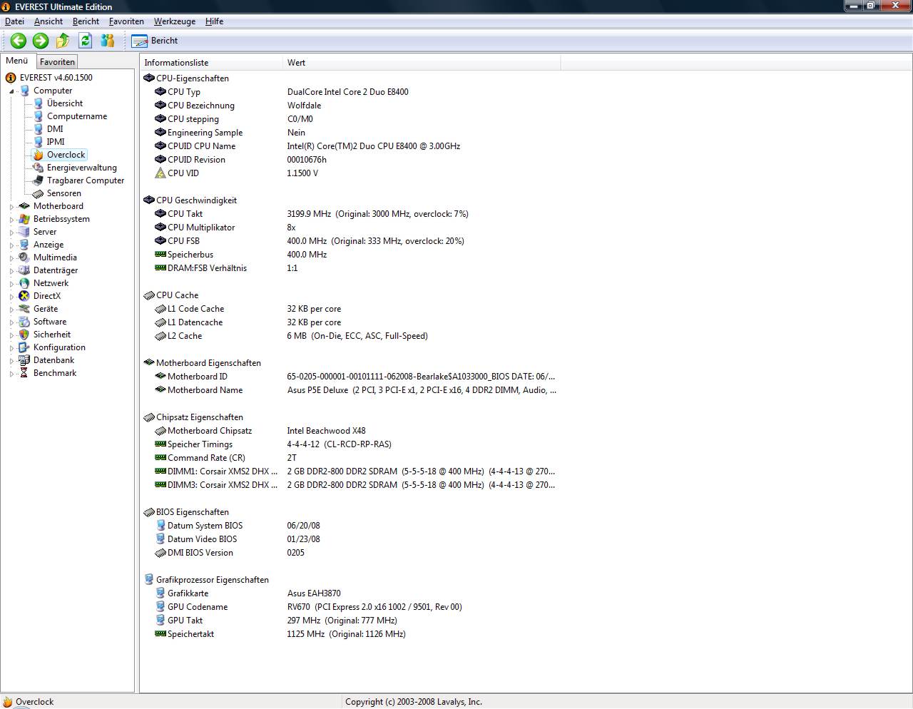 Heute konnte ich meine Corsair Dominator ddr1066 abholen gehen. Als ich diese im PC eingebauen habe, wollte ich meinen PC etwas überteackten. Leider kommt dann bei FSB1800 aber bei Vista ein Bluescreen und er rebootet.