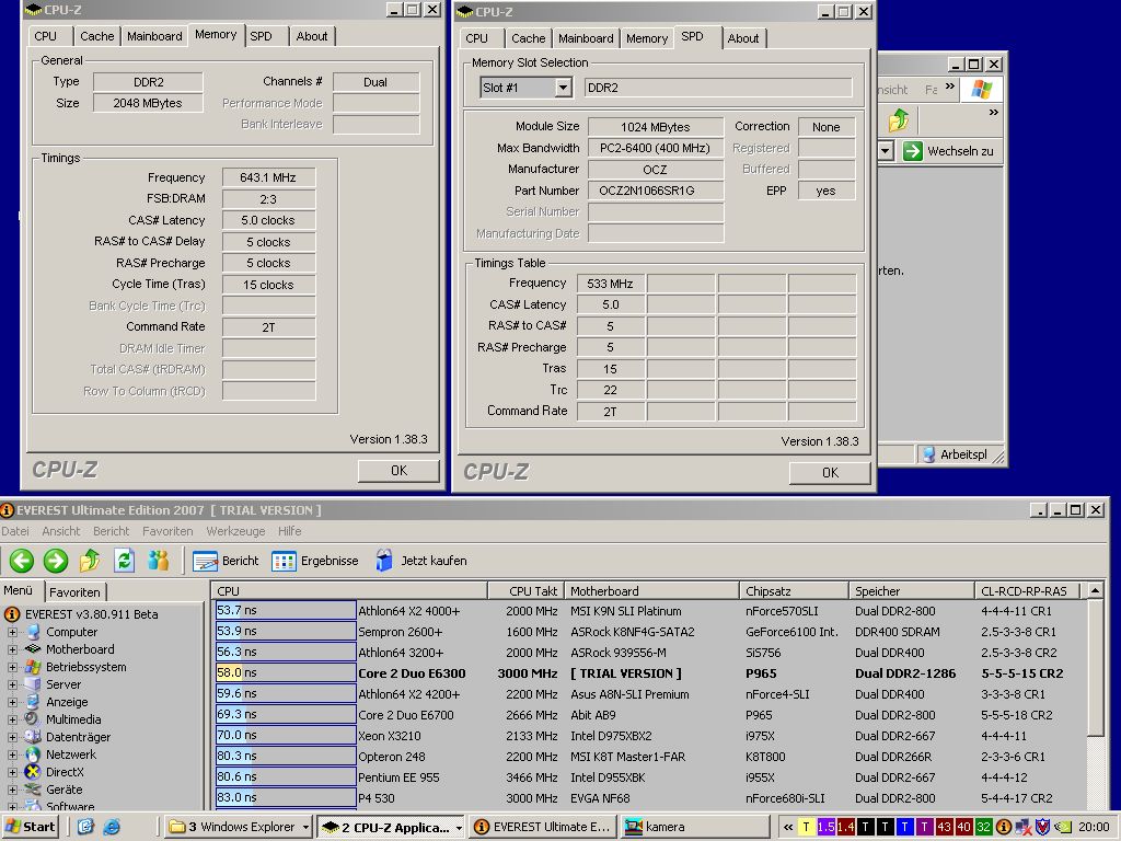 Erst hatte ich die CPU im Verdacht, dass diese wohl eine künstliche Leistungssperre ab 2,6 GHz haben könnte. Ab der Frequenz ist die 3D Mark Leistung unerklärlicherweise extrem abgesackt. Also hab ich mal die CPU meines Vaters eingebaut (ebenfalls ein E6300, aber anderes Stepping) aber immer noch das gleiche Problem. Verschiedene BIOS-Versionen ausprobiert (0711, 0804, 0910)- kein Erfolg. Dann bin ich zufällig über das Forum hier gestolpert und habe gelesen dass es Probleme mit der PCI Express Geschwindigkeit gibt und dass es wohl was bringt den PCI Express Takt zu erhöhen, damit der PCIe mit 16x statt 1x läuft. Und tatsächlich, an der PCIe lag es, denn ab 105 MHz PCIe Takt war die Performance wieder super und CPU-Z meldete mir 16-fache PCI Express Geschwindigkeit. Doch schon am nächsten Tag hatte sich die PCIe-Geschwindigkeit nach dem Einschalten des PCS von 16x wieder auf 1x heruntergesetzt *nerv. Das Hochsetzen des PCI Taktes auf 107 MHz hatte aber glücklicherweise geholfen. Doch schon am nächsten Tag (trotz 107 MHz) war die PCIe-Geschwindigkeit - ihr errated es bestimmt- wieder auf 1x