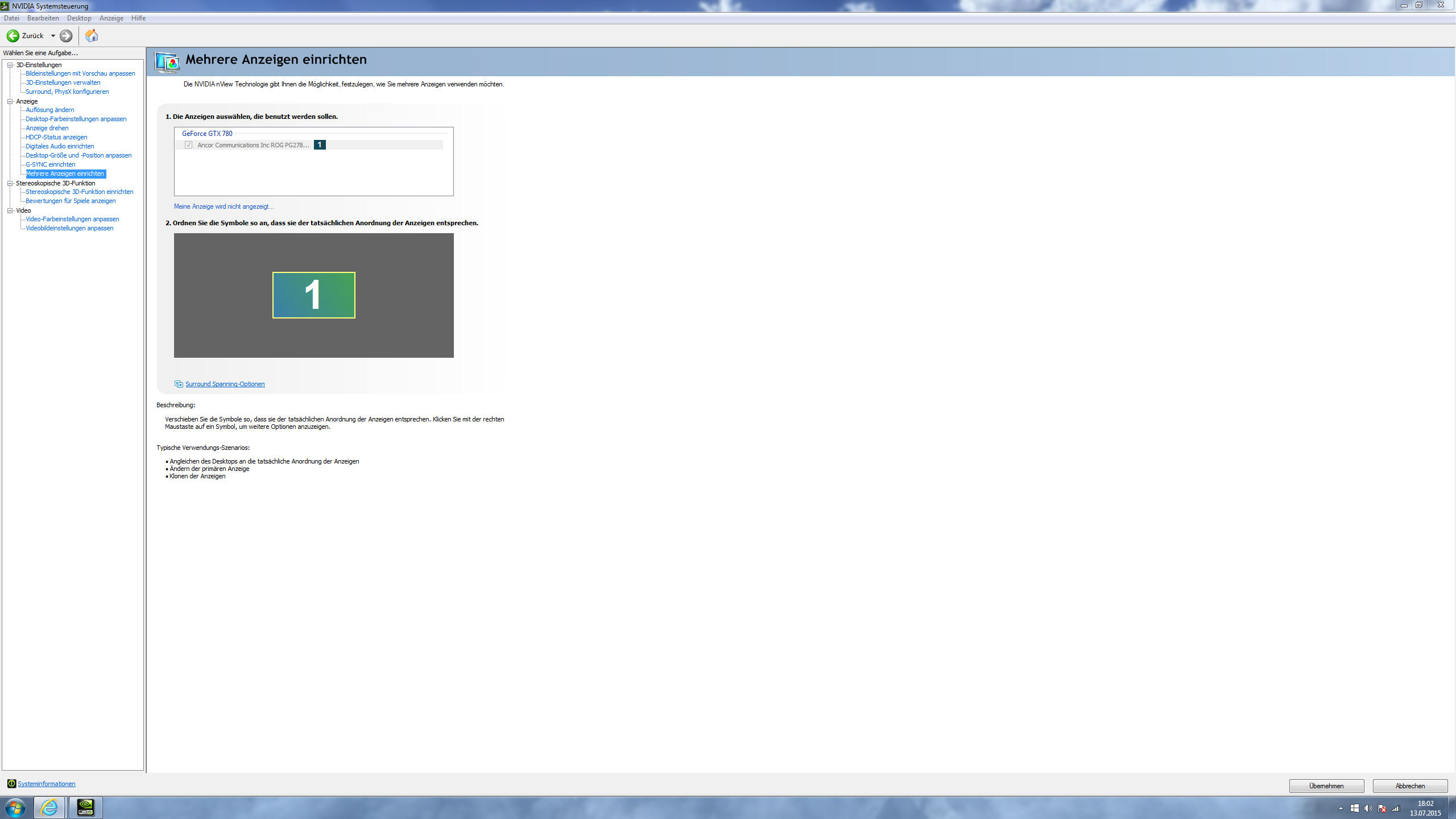 Wenn ich dann auf "mehrere Anzeigen einrichten" gehe, kommt das ohne weitere Auswahlmöglichkeiten: