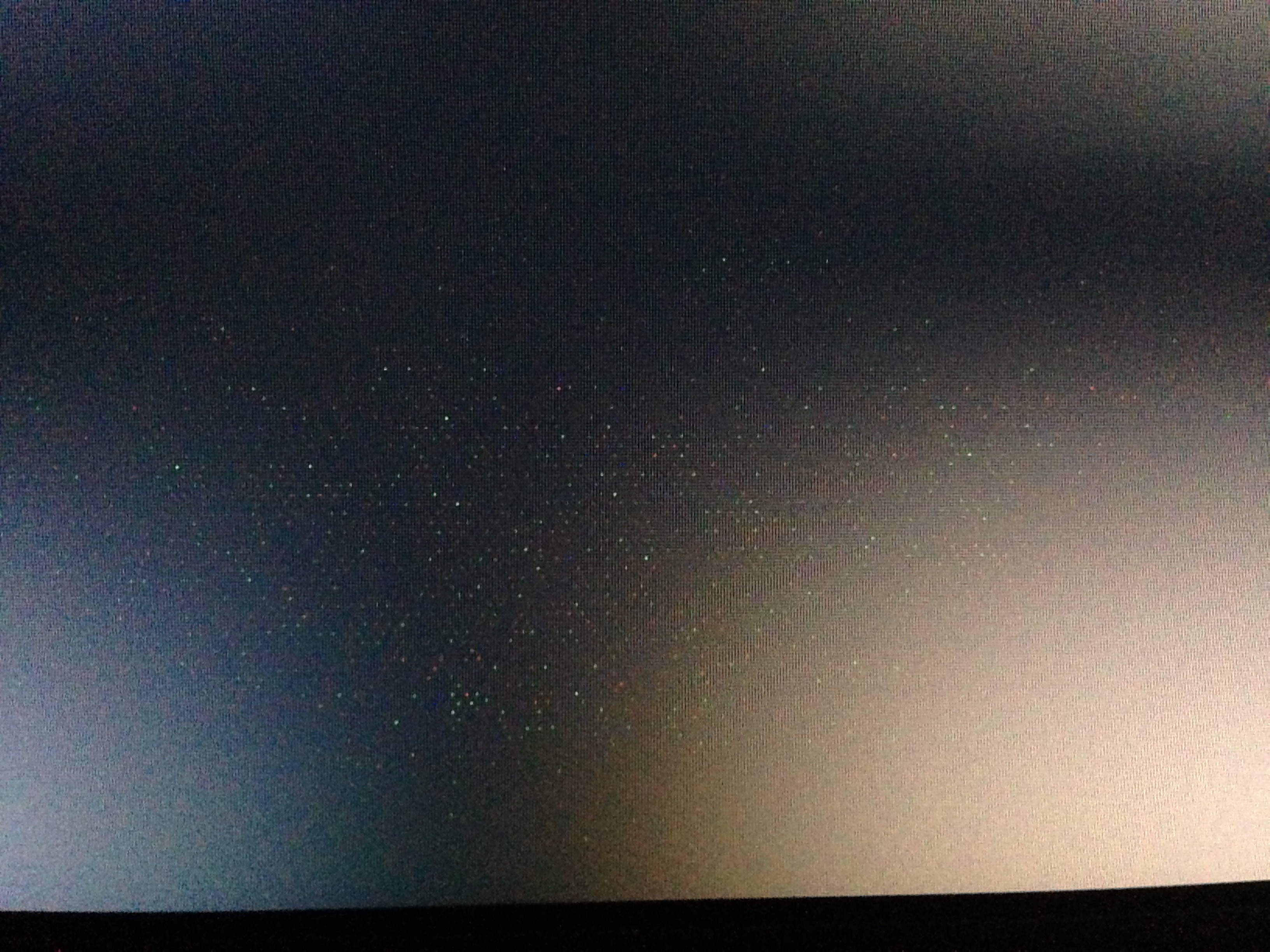 Was aber viel schlimmer ist: Bei der Suche nach weiteren Pixelfehlern ist noch etwas aufgefallen, was vorher nicht da war. Es sieht aus, wie eine Wolke aus leuchtenden Subpixeln die nur auf schwarzen Flächen sichtbar sind.
