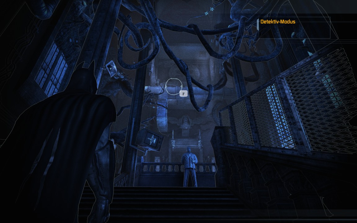 Das dacht ich mir. Ich bin mit etwas Tricksen und dem Nutzen von Glitches jetzt am Rand entlang ge"laufen" und konnte mich direkt in den Schacht ziehen. Juhu. Nur damit ich jetzt im Arkham Mansion das gleiche Problem hab. Hab wieder nen Shot gemacht. Ich nehme an, da kannst du dich auch hochziehen?