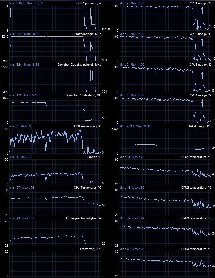 Laut Taskmanager bei mir CPU 76% und Arbeitsspeicher 8GB 56%