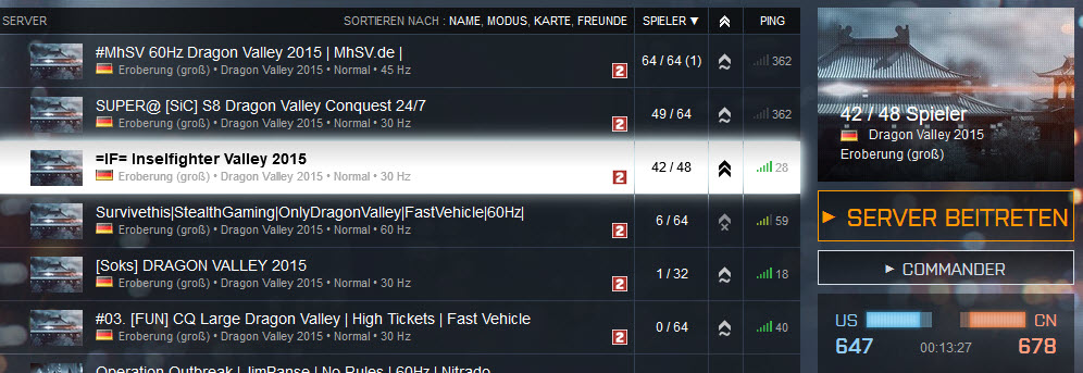 Gestern wieder kurz eine Runde Dragon gespielt. Die Pings sind bei mir wieder normal (spiele meiste nur 5-8 verschiedene Server). Keine Ahnung wran das genau gelegen hat.