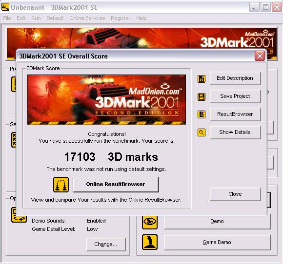 Hab jetzt das erste mal 3DMark2001 gestartet. Komme auf 15232 Punkte. Ist das Gut ? 440/900 getaktet.