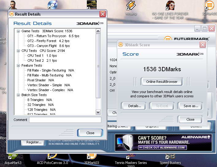 Nach dem 3DMark05 Schock musste ich einfach nocheinmal den 03er sowie den Aquamark3 Bench durchlaufen lassen (mit FW 66.72)