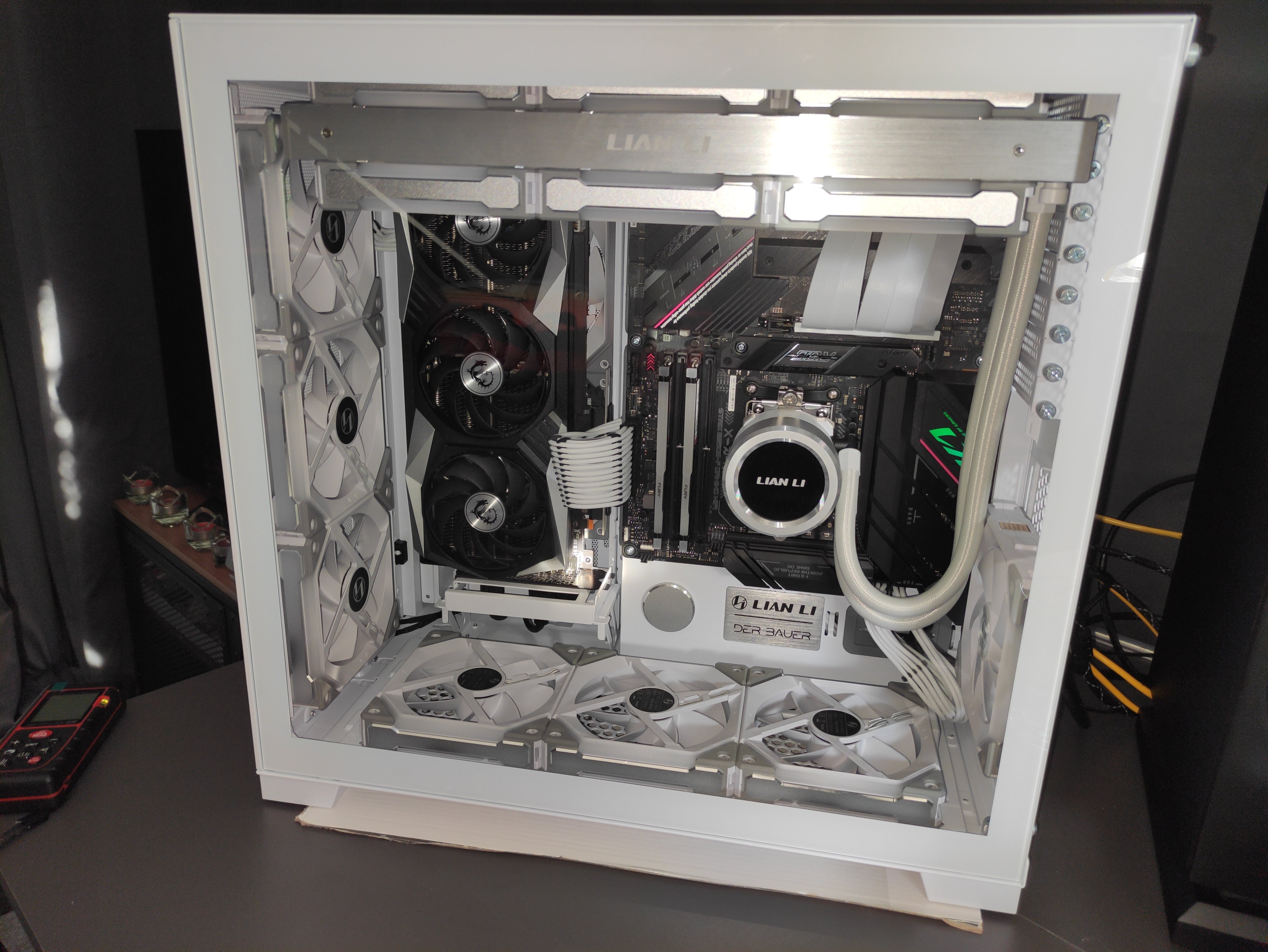 Vom Luftstrom wird das 600T aber eher scheiße sein. So ein 200x20mm-Lüfter mit 600 1/min taugt eigentlich auch nichts, den ich schon gegen einen neuen gebrauchten ersetzt habe. Aber da ich im Seitenteil ein Gitter habe, kann sich die Grafikkarte (MSI 4080 Suprim X <3) außen Luft ansaugen und sie dort auch bisschen entweichen lassen. Generell ist das Gehäuse mittlerweile altbacken mit diversen Designentscheidungen. Aber 2010 war ich richtig drauf gehyped und der Platz auf der Rückseite ist heute noch sehr geil.