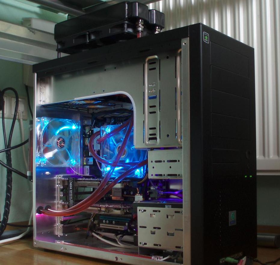 - gehäuse deckel selber ausgesägt und blenden eingebaut inkl. der wasserkühlungsteile