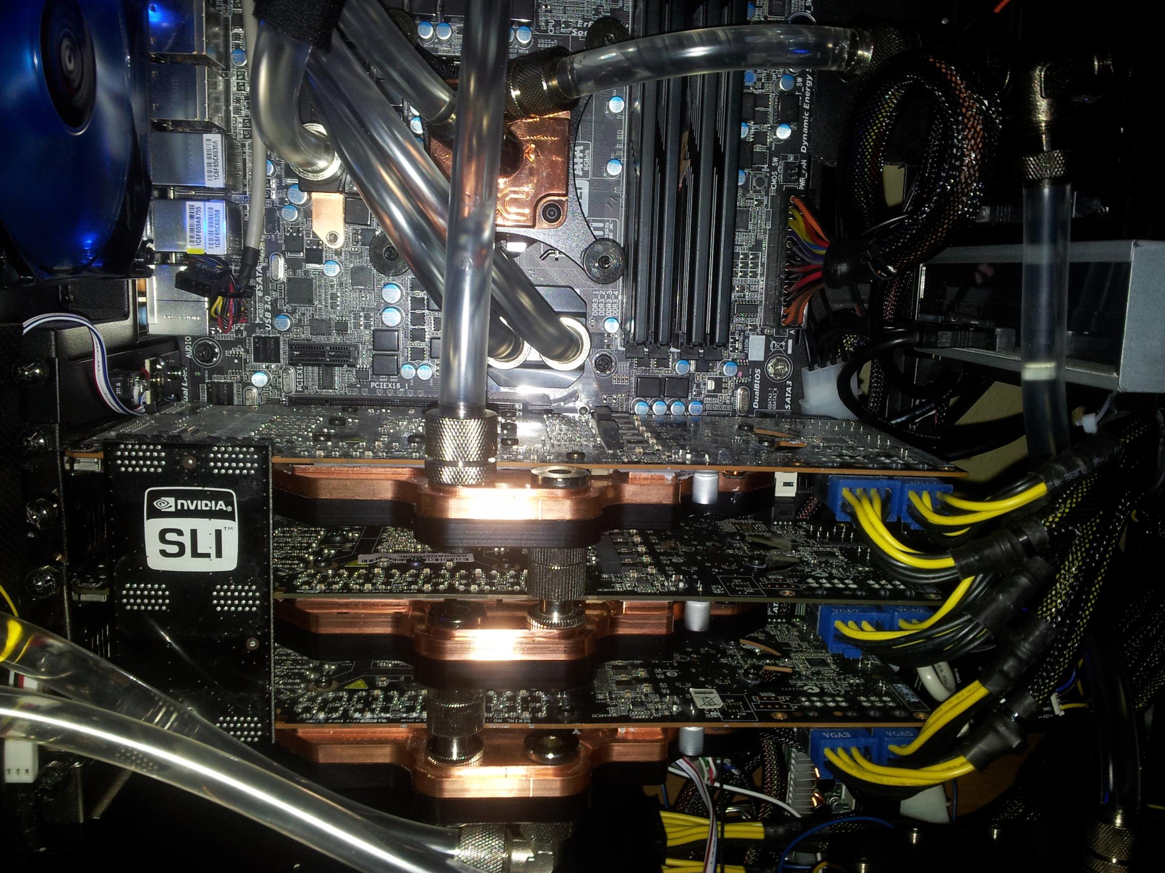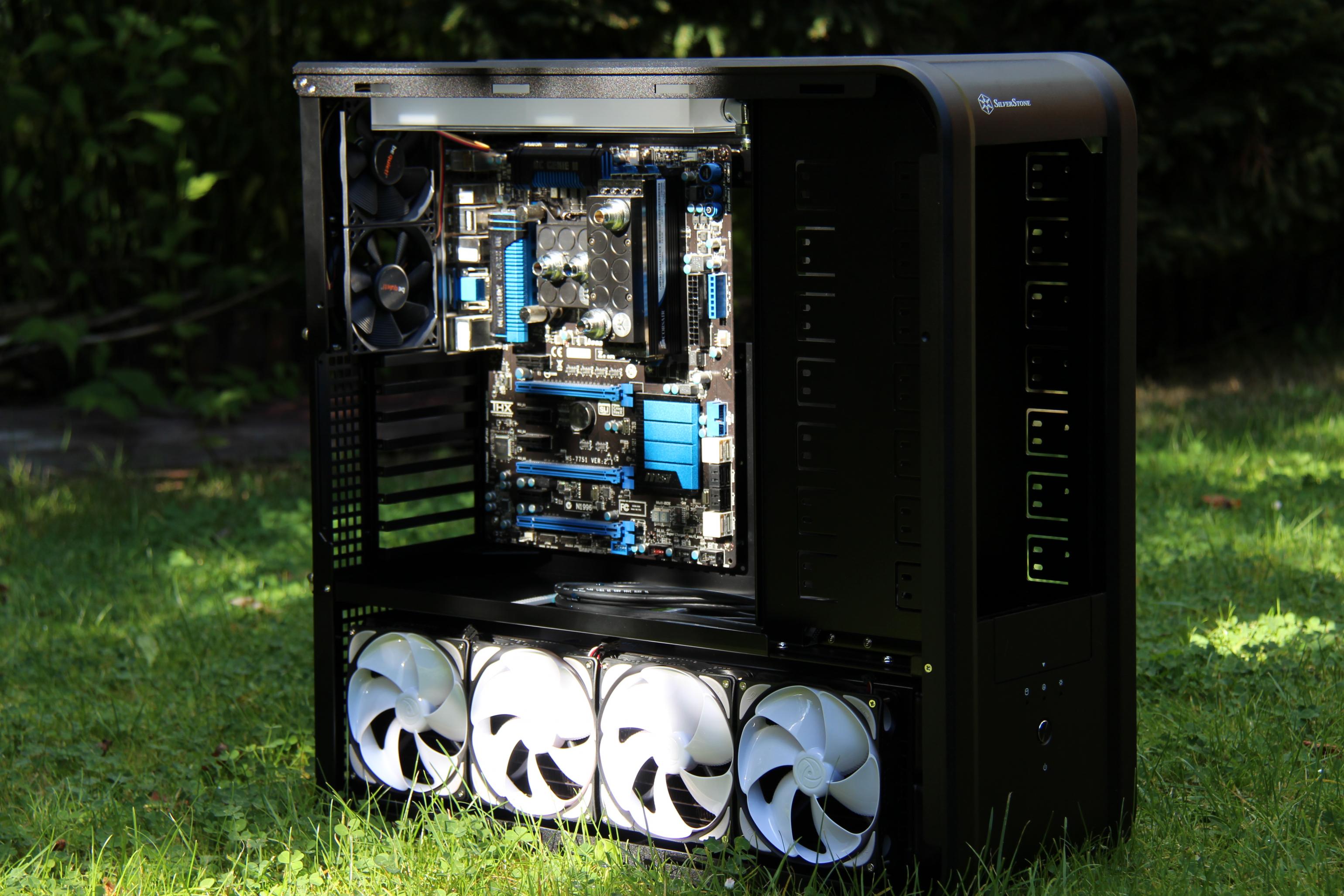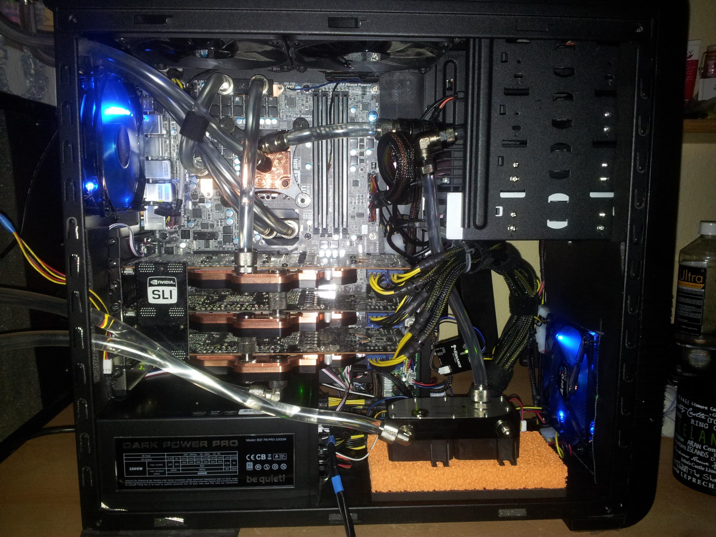Bild 1 ist noch von 2010. Grundsätzlich hat sich nicht soviel geändert, außer dass ein S2011 System drauf ist und die GTX 680 auch im Kreislauf hängt.
